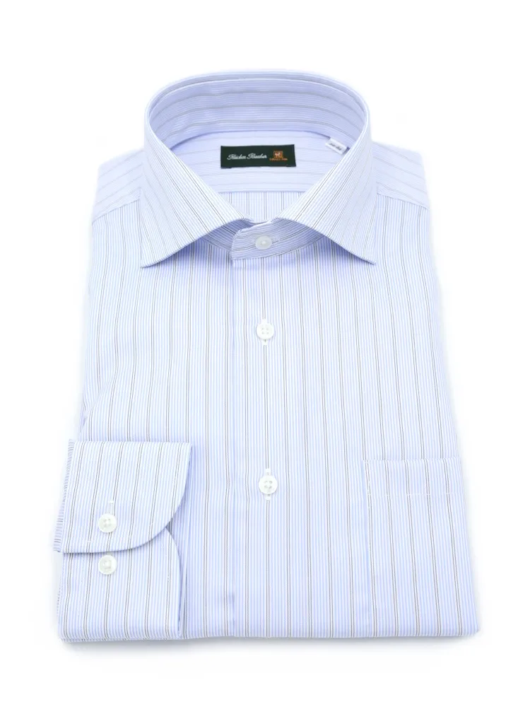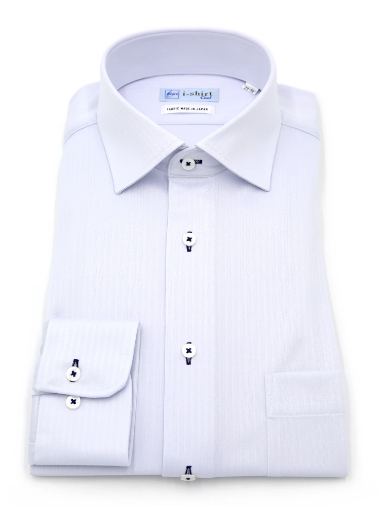 【完全ノーアイロン】長袖アイシャツ セミワイド【バイオセンサークール生地使用】吸湿冷感 高通気 ストライプ 織柄無地 ワイシャツ i-shirt 春夏(サックス)