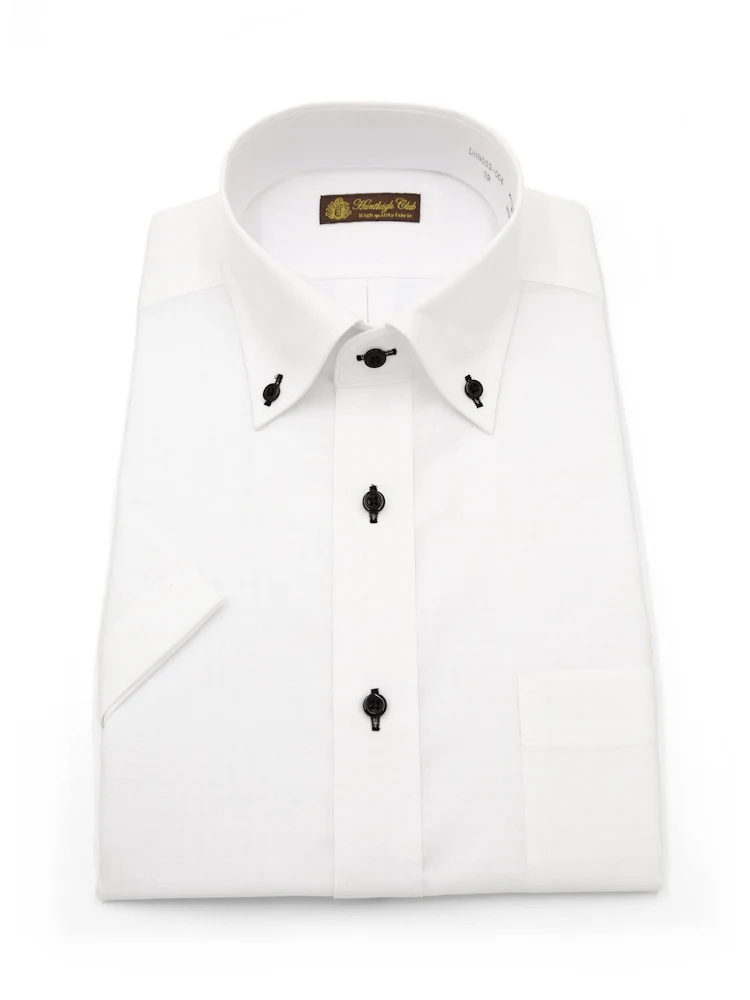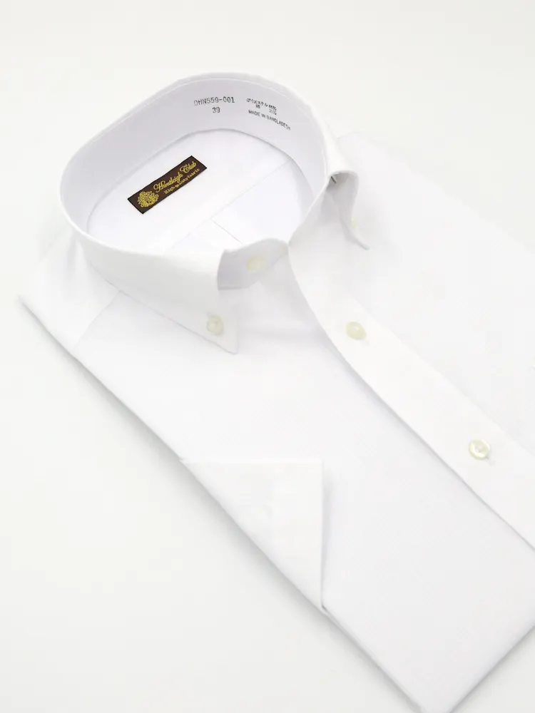 【形態安定】半袖 ワイシャツ ボタンダウン 白ドビー 織柄無地 ハントレークラブ 春夏(オフホワイト)