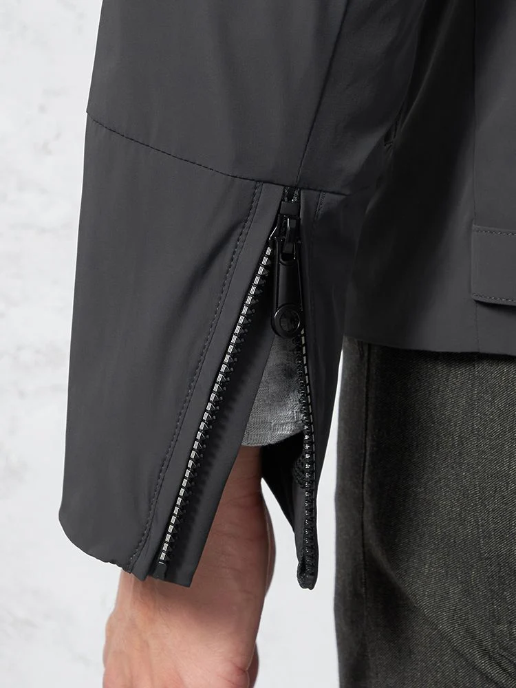 フロントはダブルジップを採用しており、開き具合のアレンジも楽しめます。