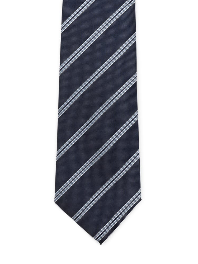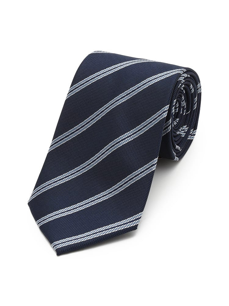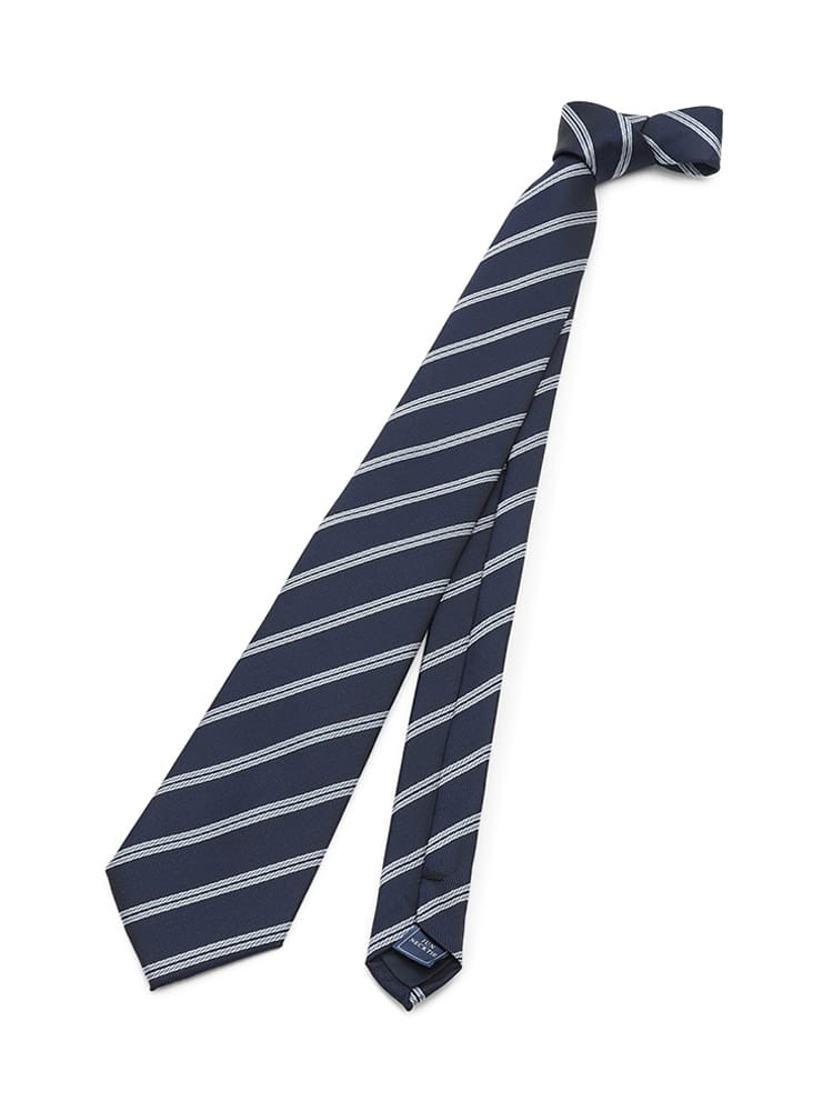 【シルク混】ネクタイレギュラーリクルートタイネイビーストライプ通年
