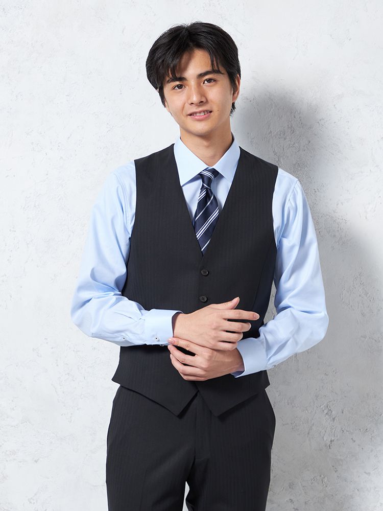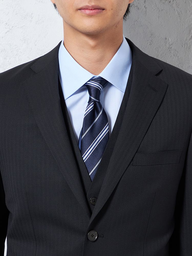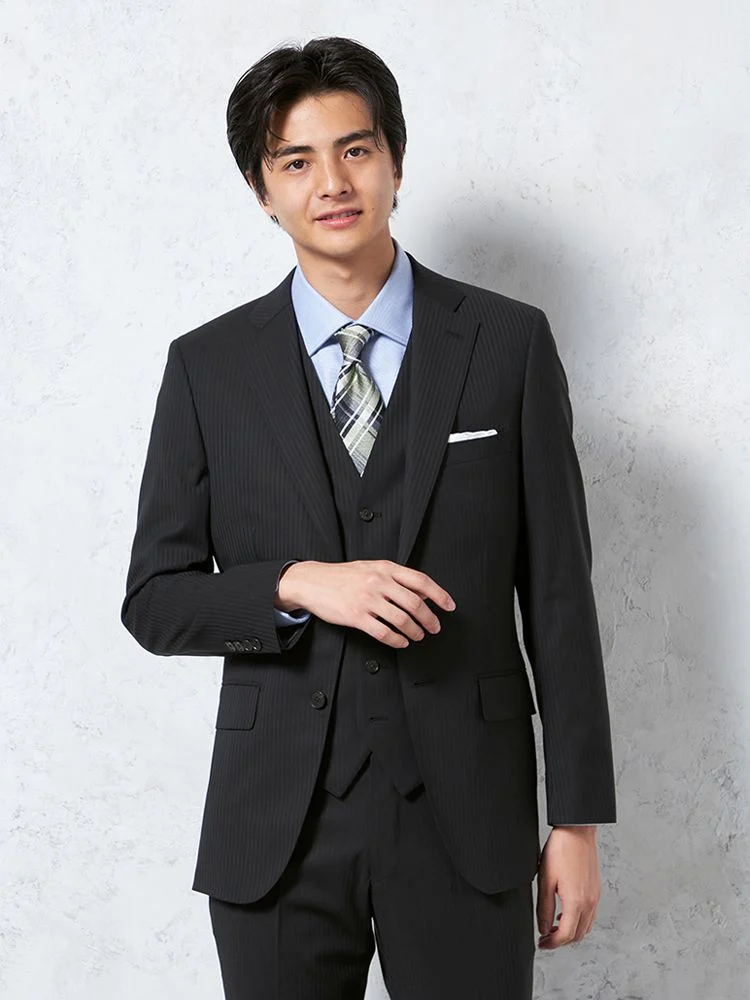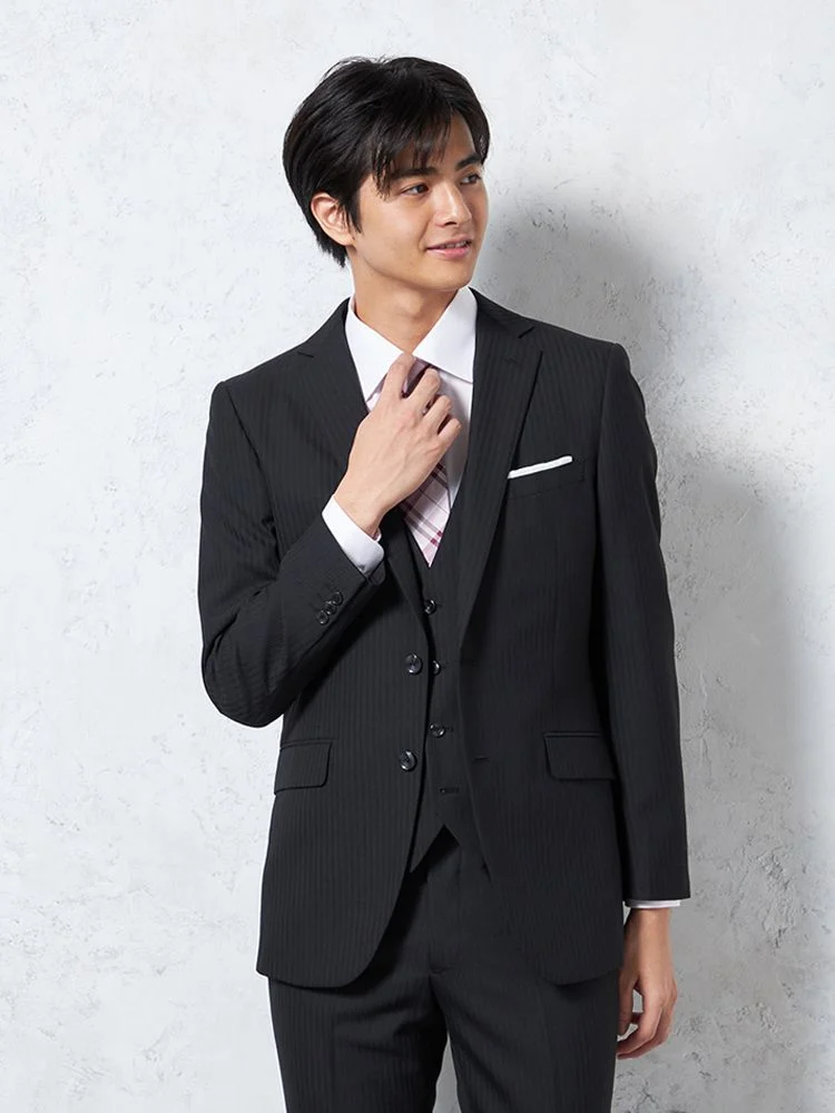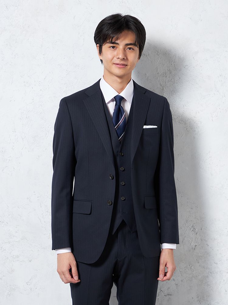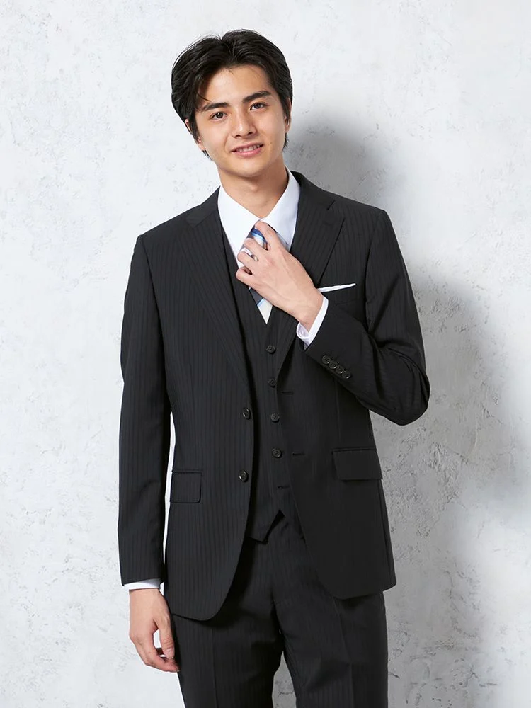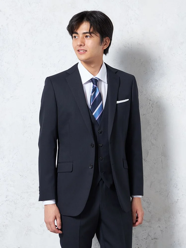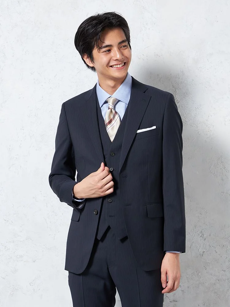 表地は2WAYストレッチ素材、裏地は滑らかなキュプラを使用したスリーピーススーツ。