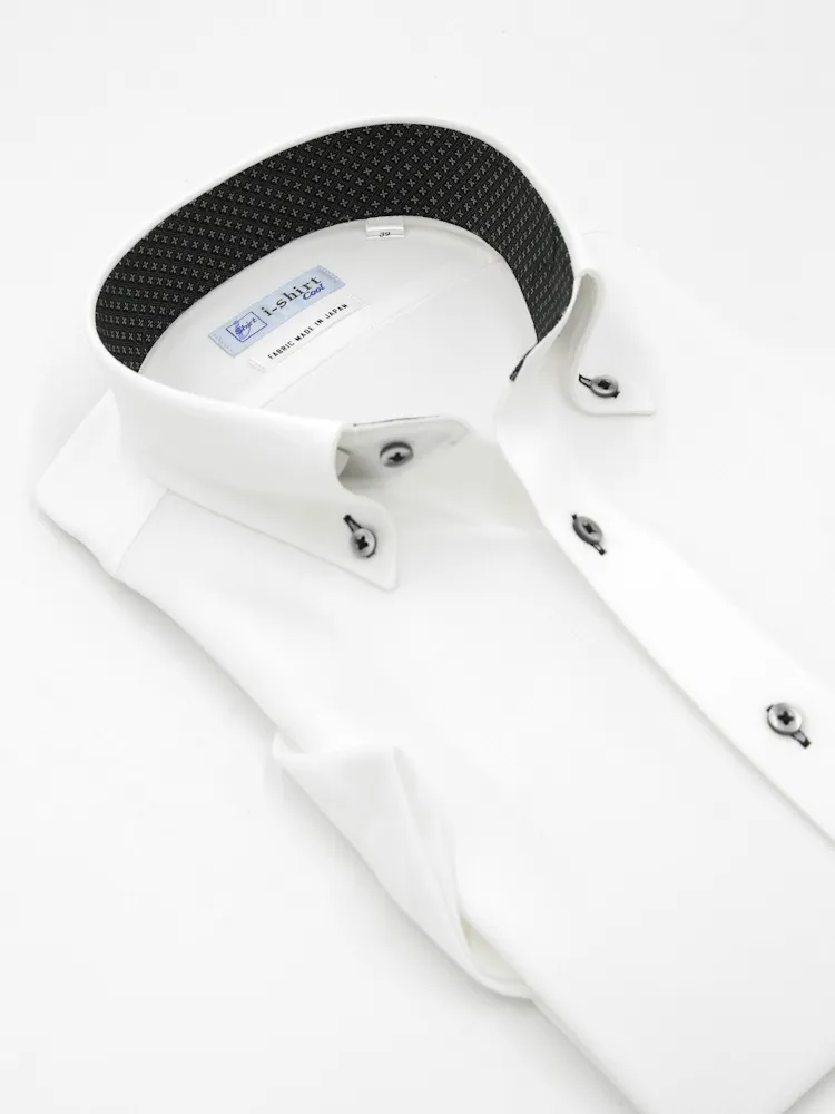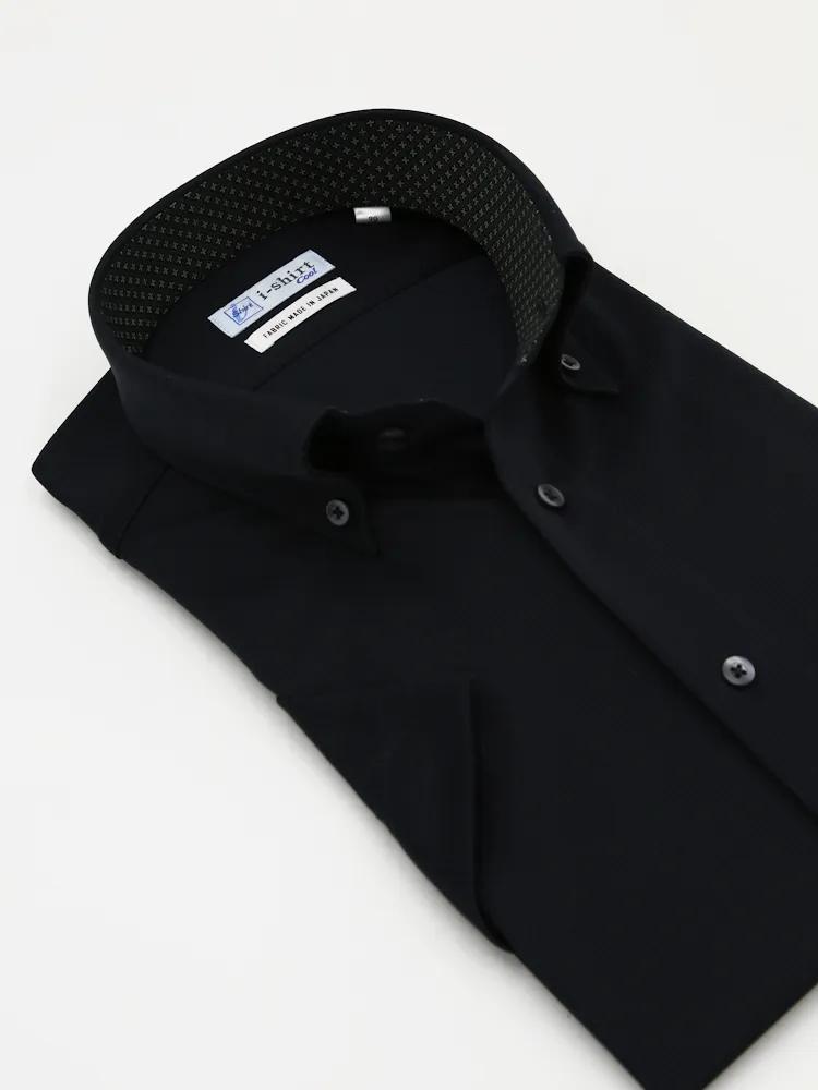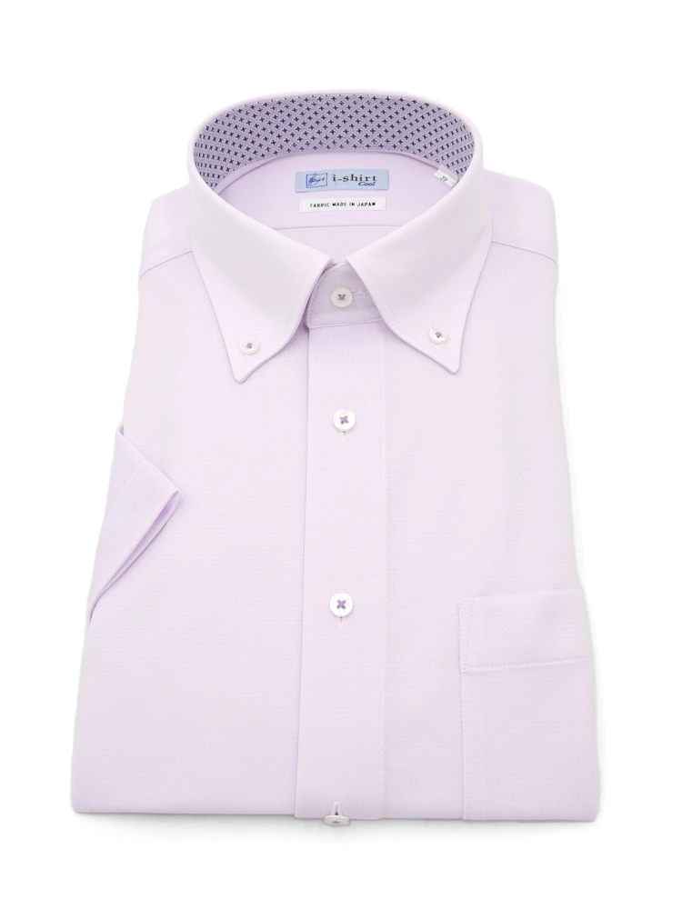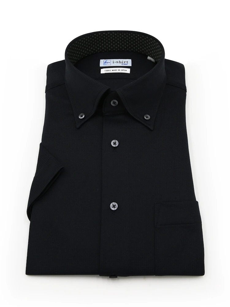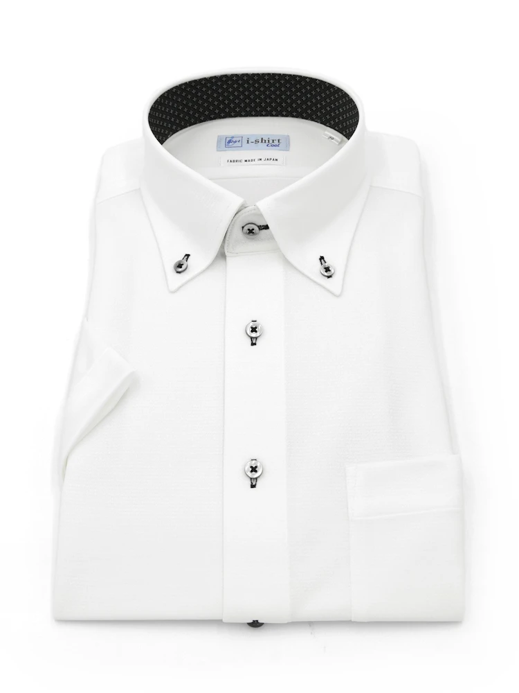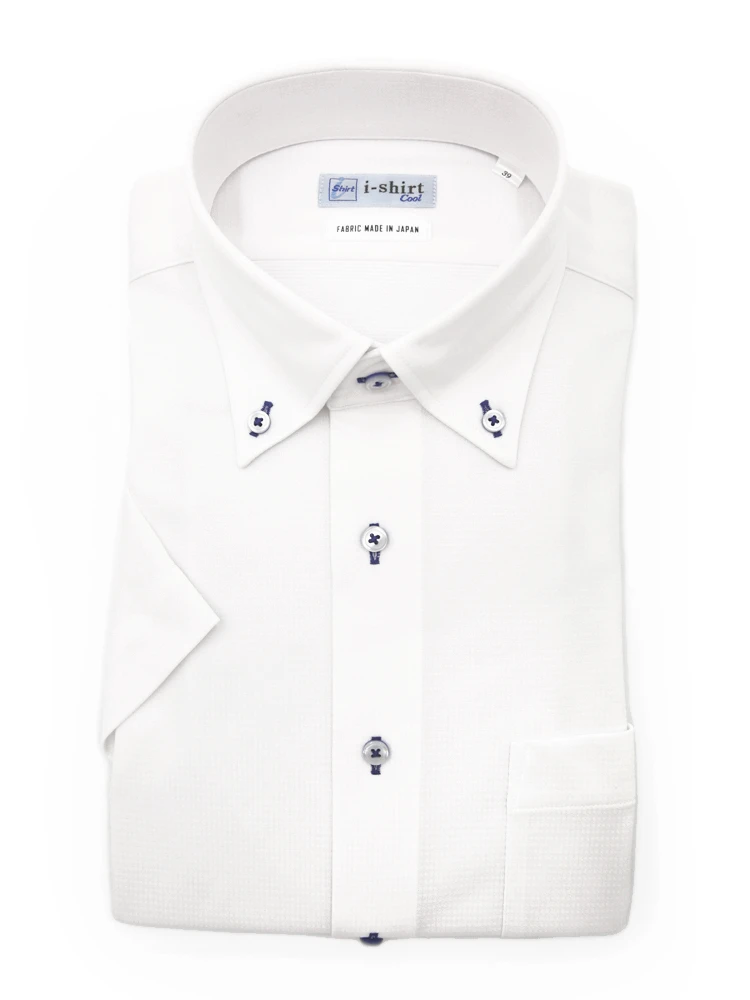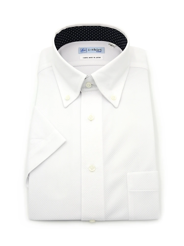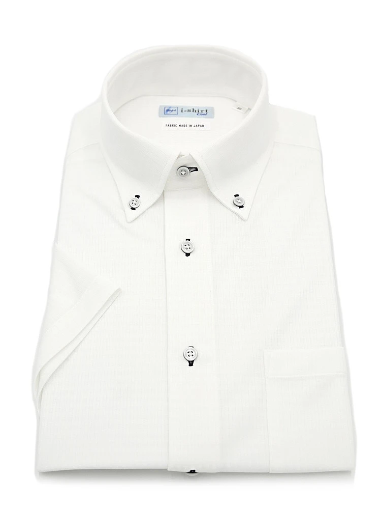【完全ノーアイロン】半袖アイシャツボタンダウン【メタクール生地使用】吸湿冷感ツイル織柄無地ワイシャツi-shirt春夏