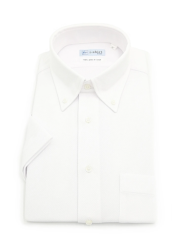 【完全ノーアイロン】半袖アイシャツボタンダウン【DRYAIR生地使用】通気性織柄無地ワイシャツi-shirt春夏