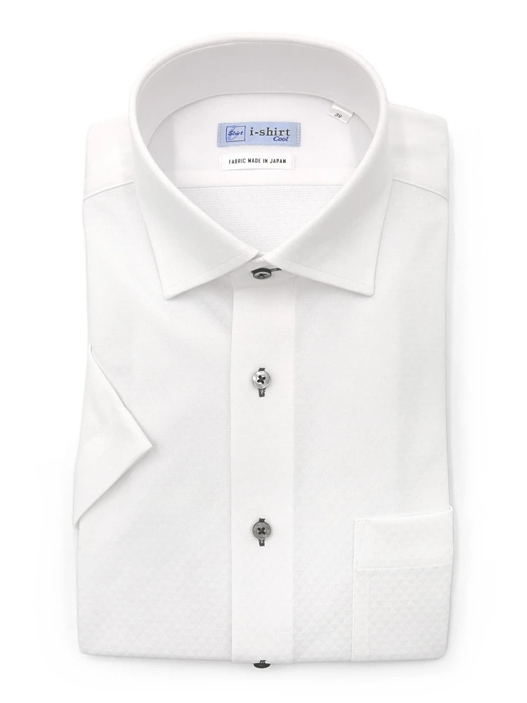 【完全ノーアイロン】半袖 アイシャツ セミワイド【バイオセンサークール生地使用】吸湿冷感 高通気 織柄無地 ワイシャツ i-shirt 春夏(ホワイト)