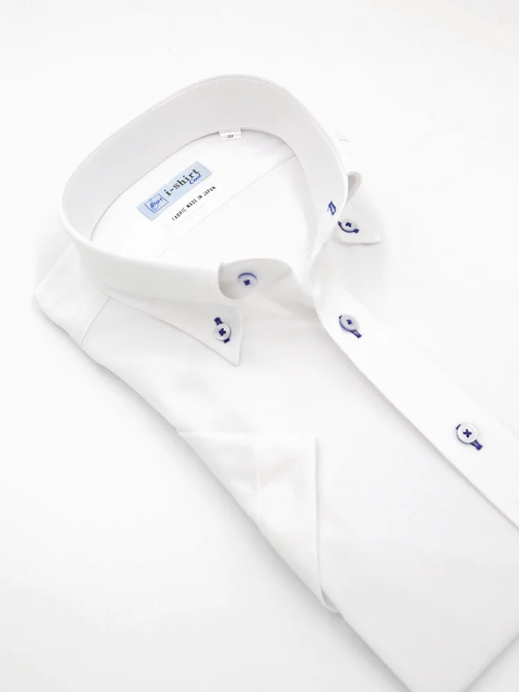 【完全ノーアイロン】半袖アイシャツボタンダウン【メタクール生地使用】吸湿冷感ツイル織柄無地ワイシャツi-shirt春夏