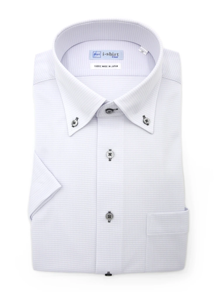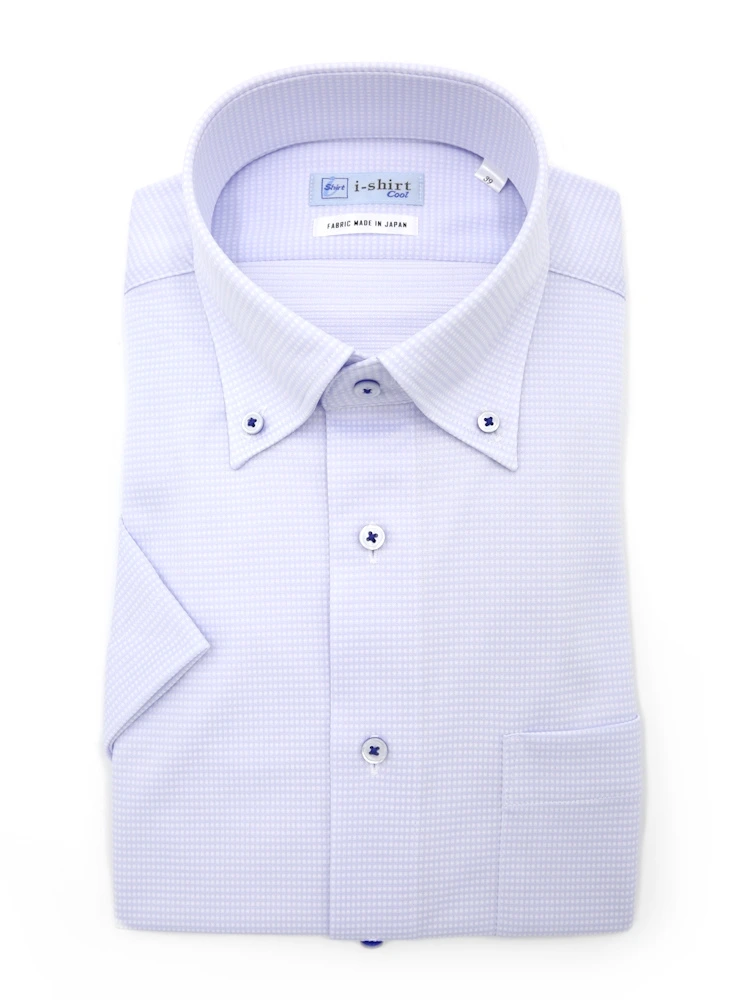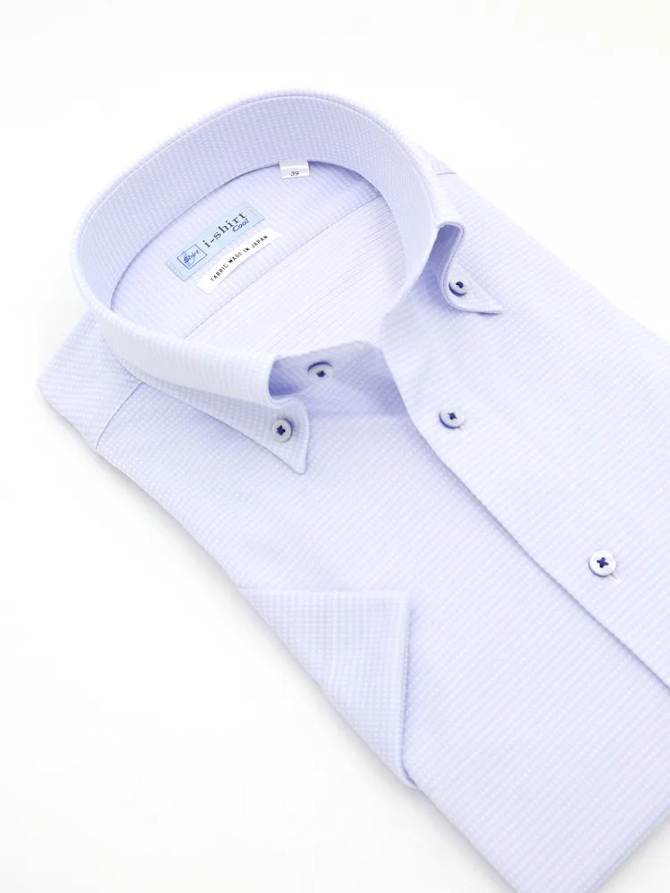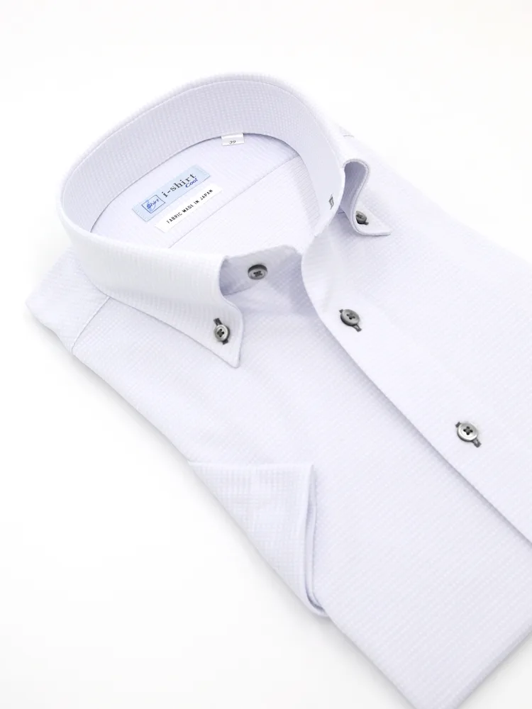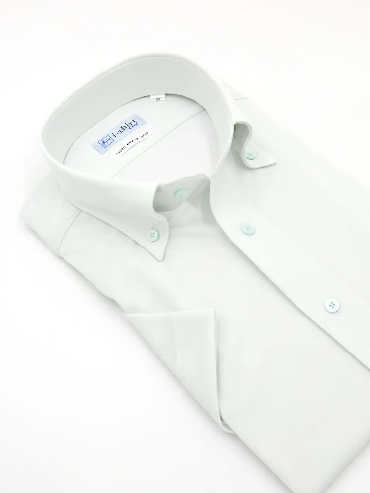 【完全ノーアイロン】半袖アイシャツボタンダウン【バイオセンサークール生地使用】高通気冷感織柄無地ワイシャツi-shirt春夏