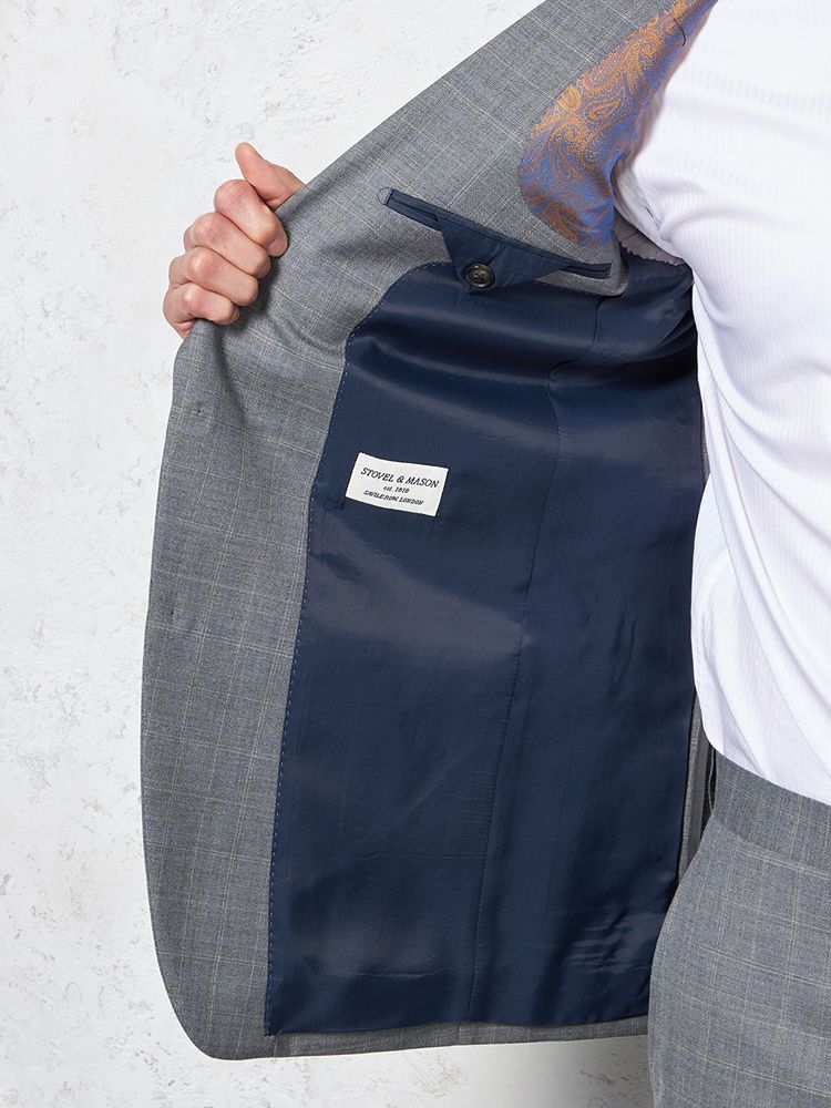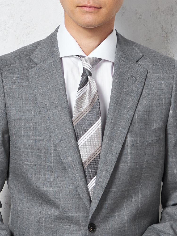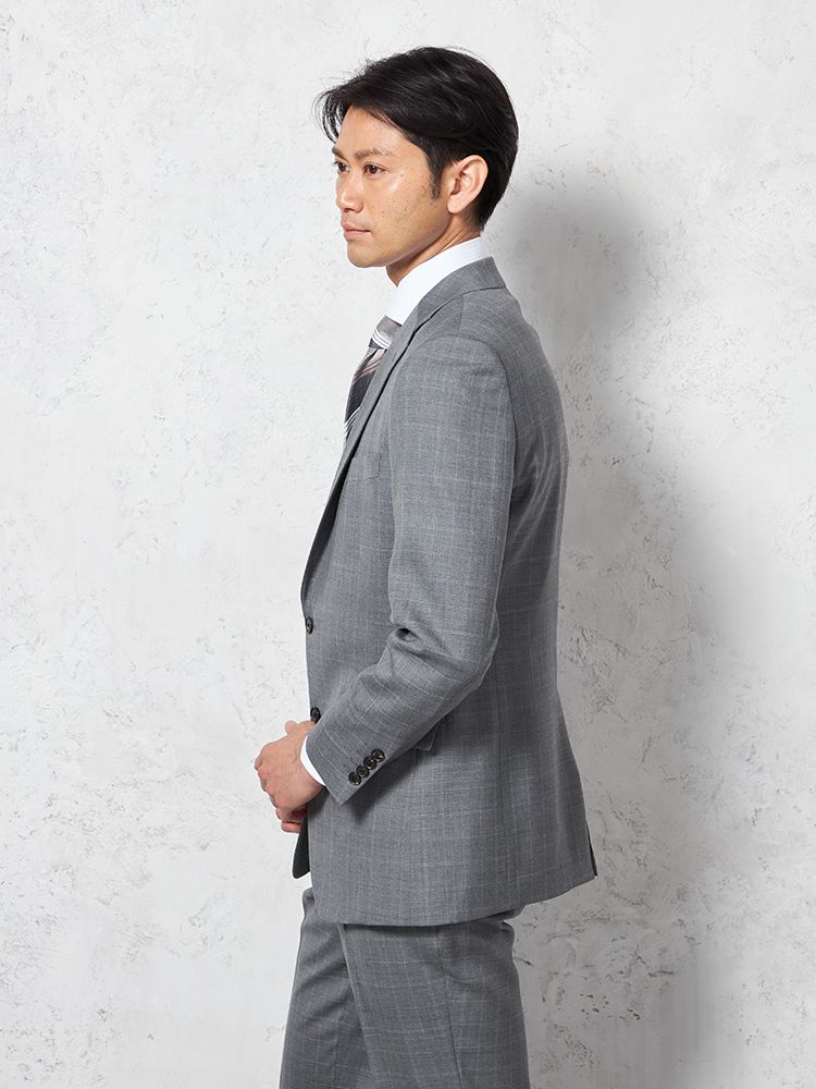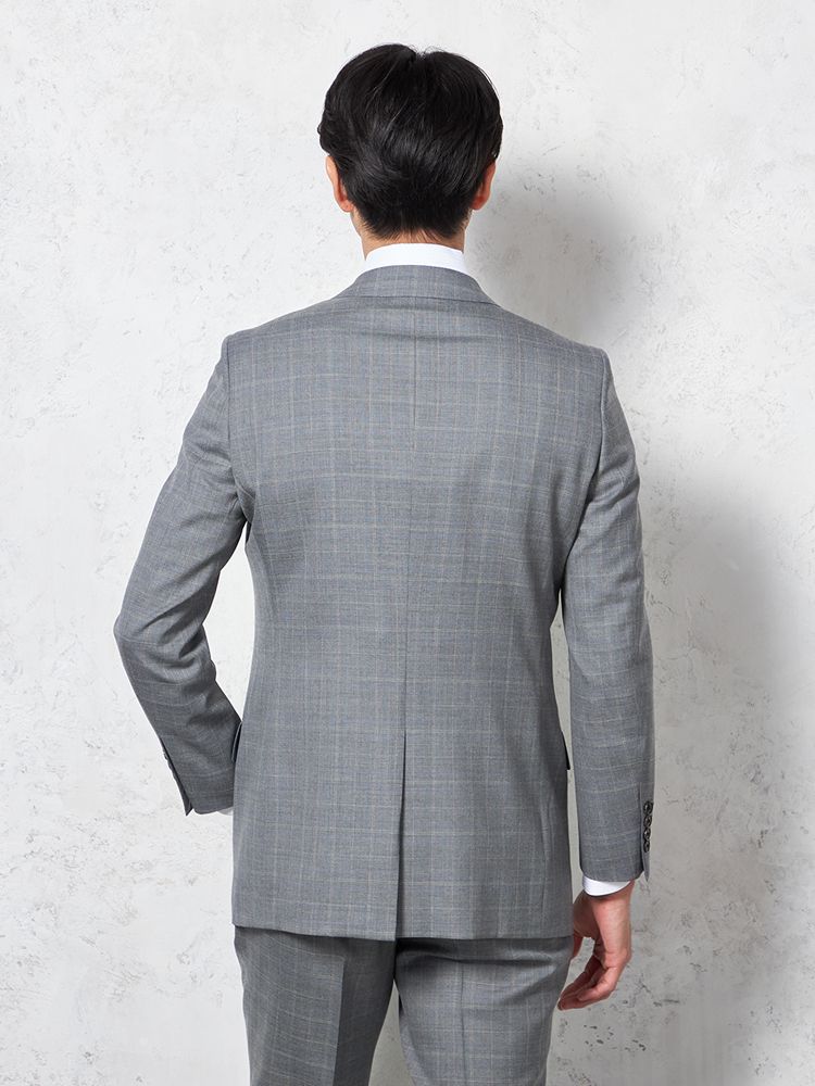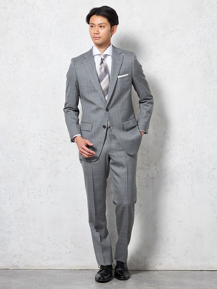 【ウール混】スーツ 2つボタン 尾州生地 ライトグレー チェック STOVEL&MASON