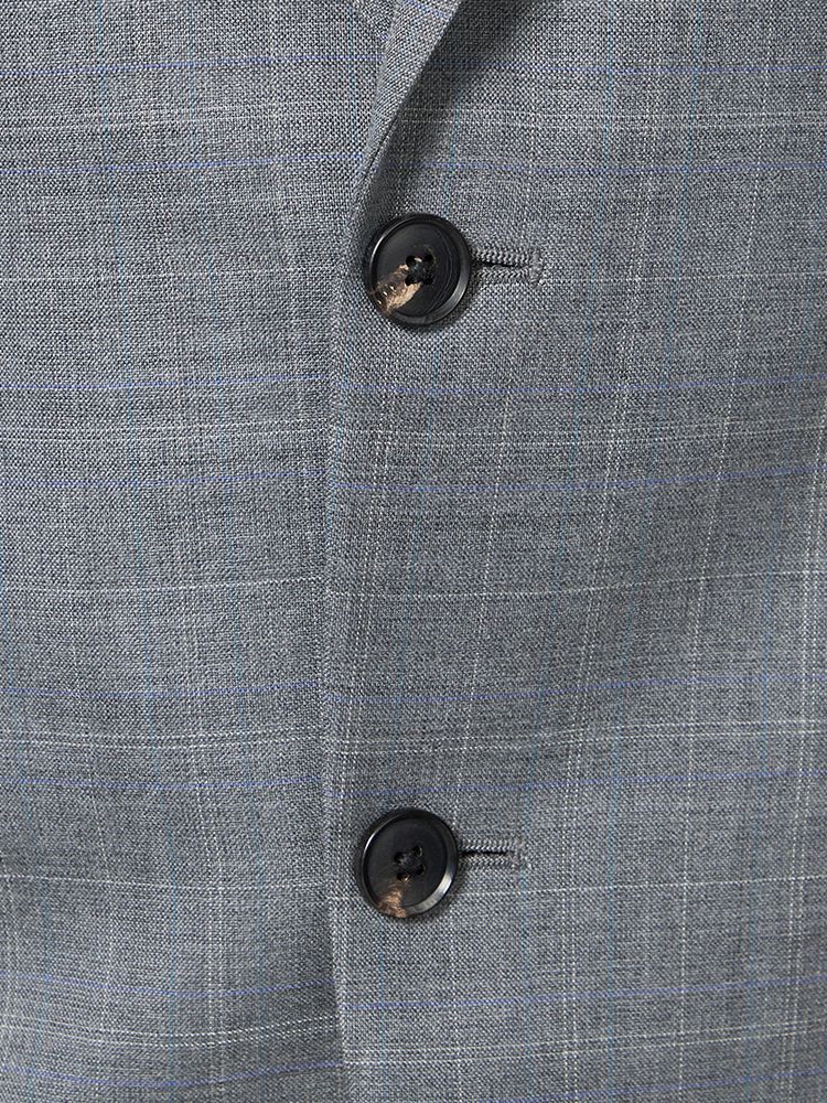 ラペル毛芯仕様でボタンも本水牛という、高いクオリティにこだわった仕立て。