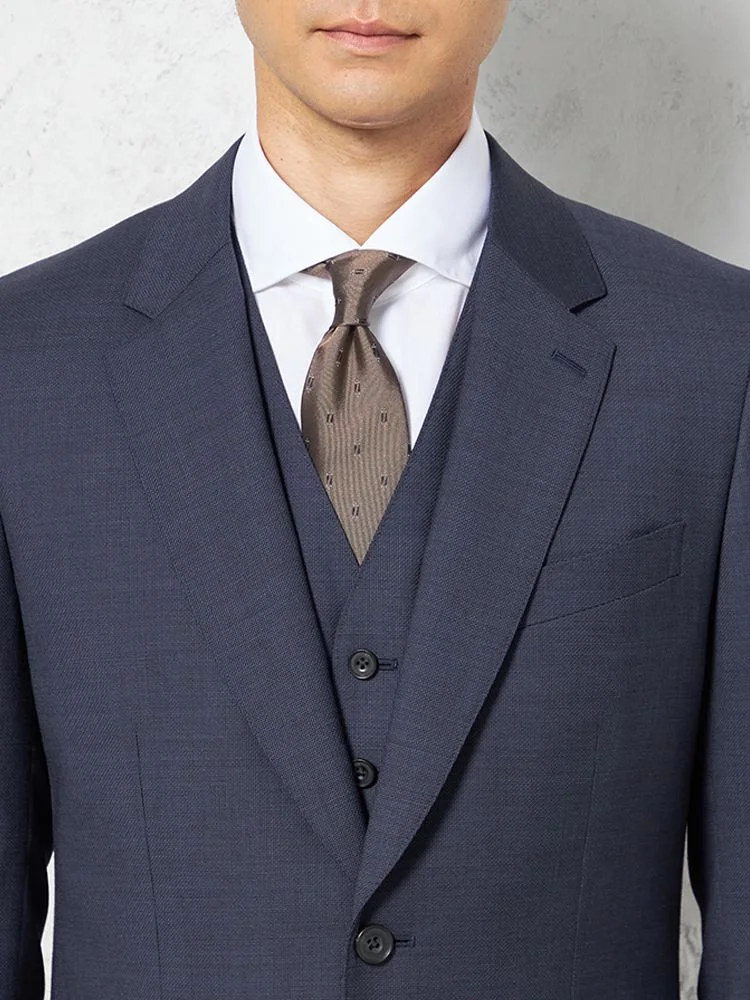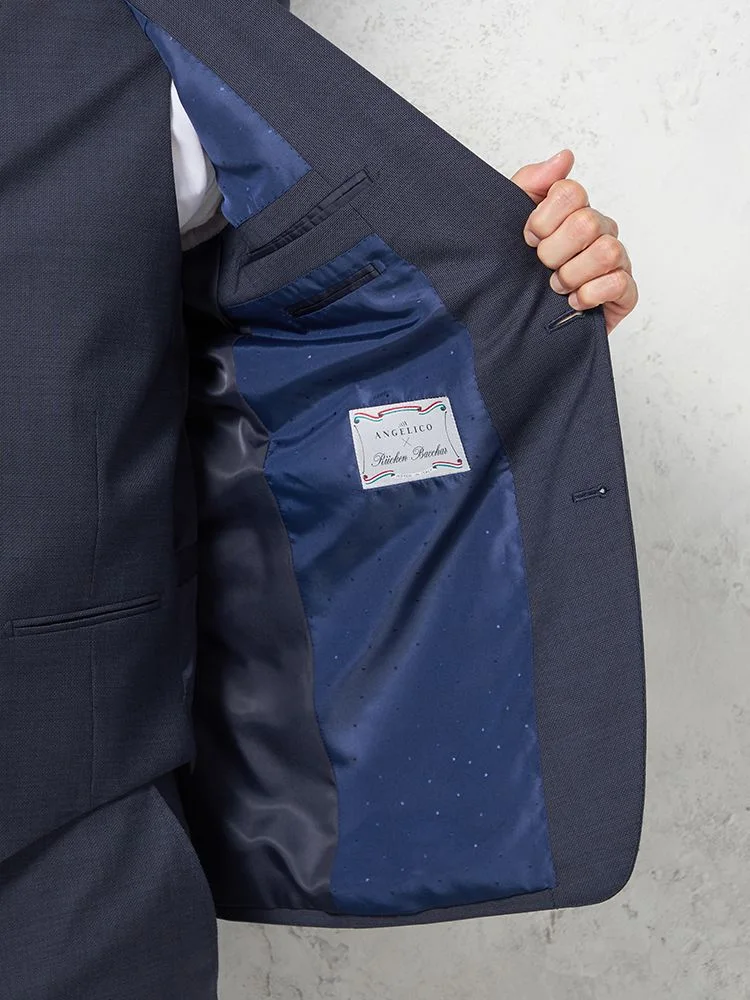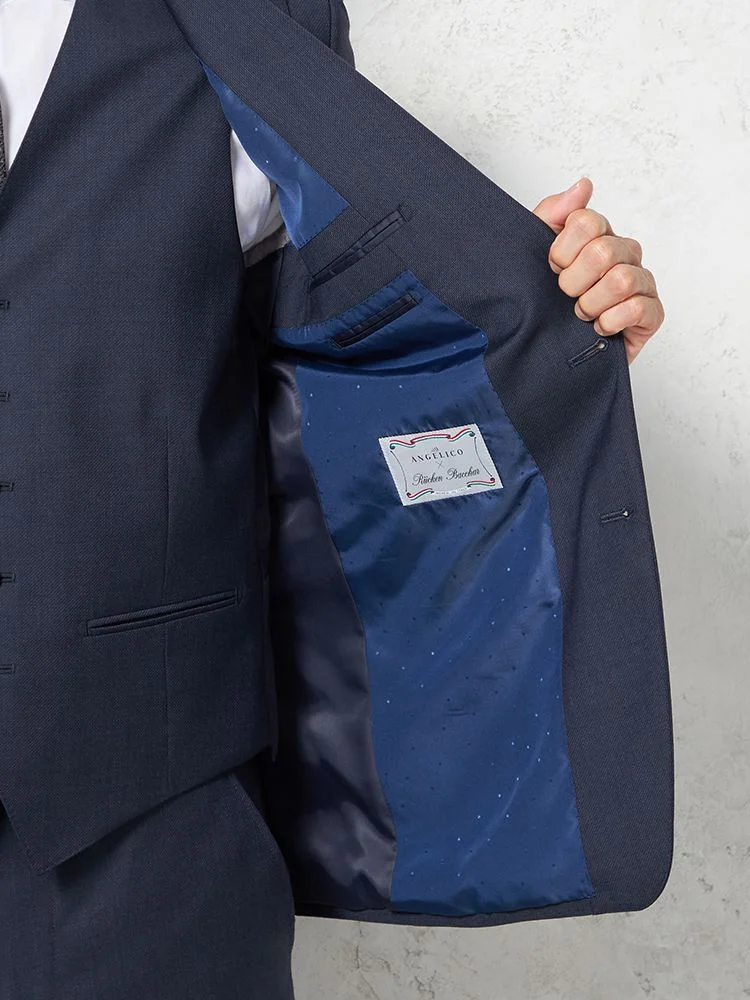 【ウール100%】スリーピーススーツ 2つボタン アンジェリコ 無地 リッケンバッカー 通年(ブルー)