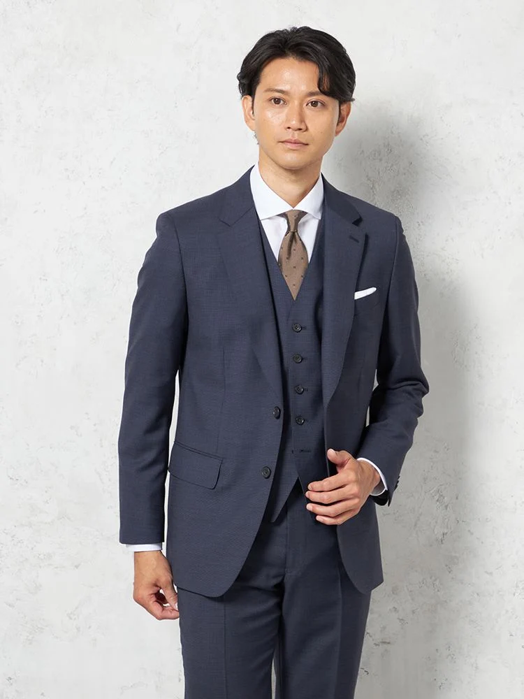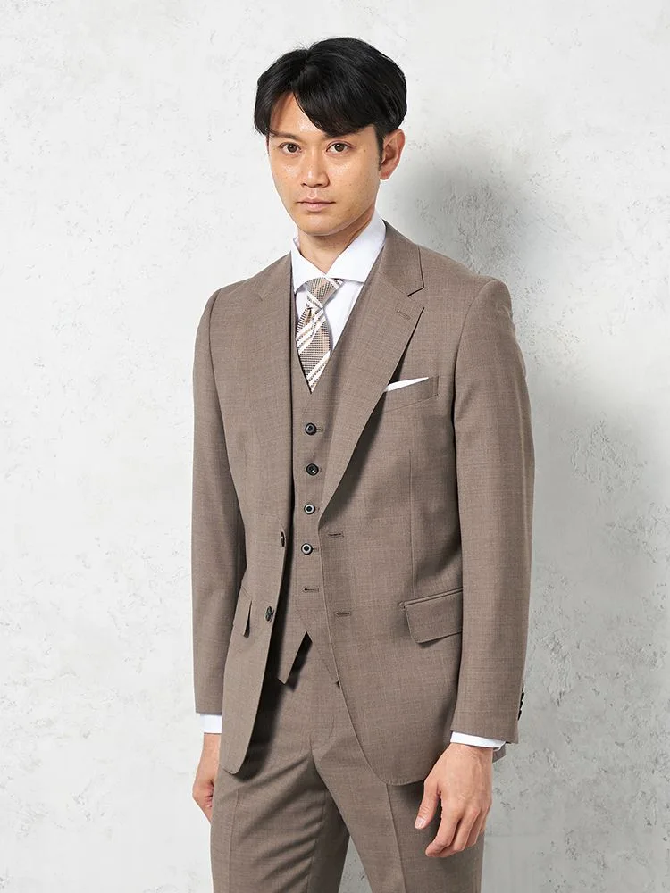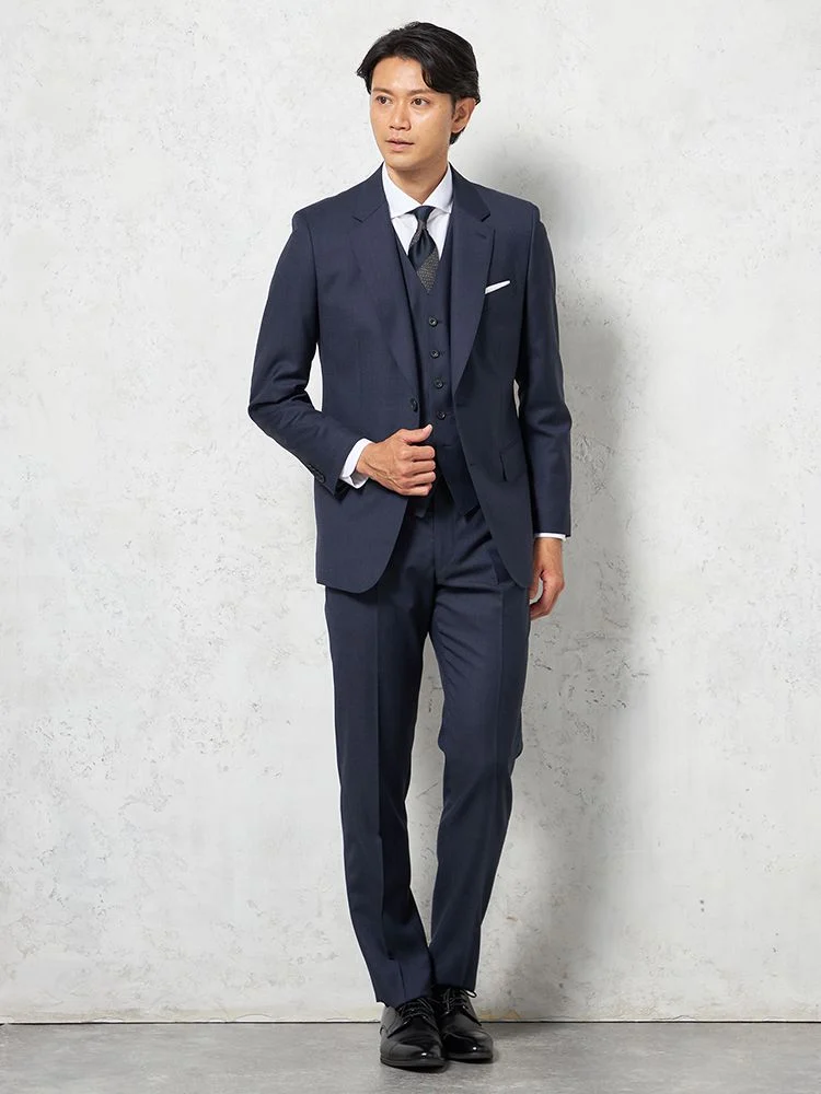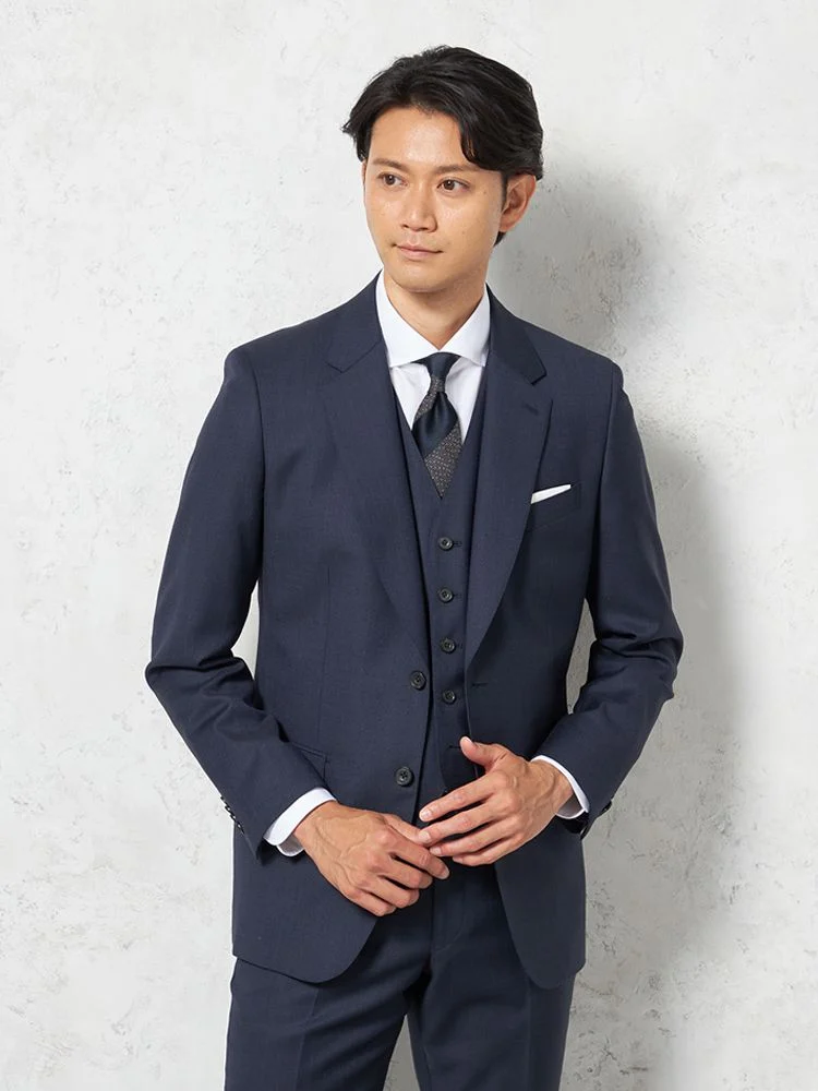 【ウール100%】スリーピーススーツ2つボタン【REDA社製生地】無地リッケンバッカー
