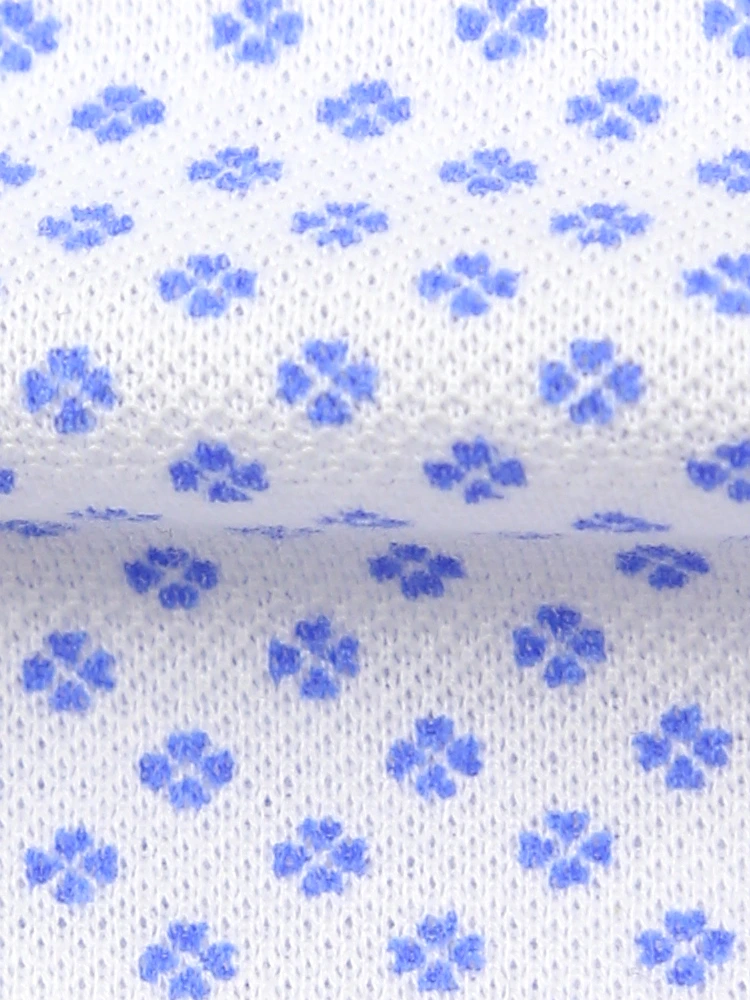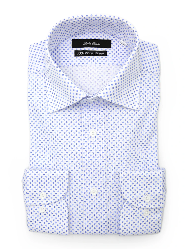 【100CottonJersey】長袖ワイシャツセミワイドプリント柄小紋ブルー綿100%リッケンバッカー通年