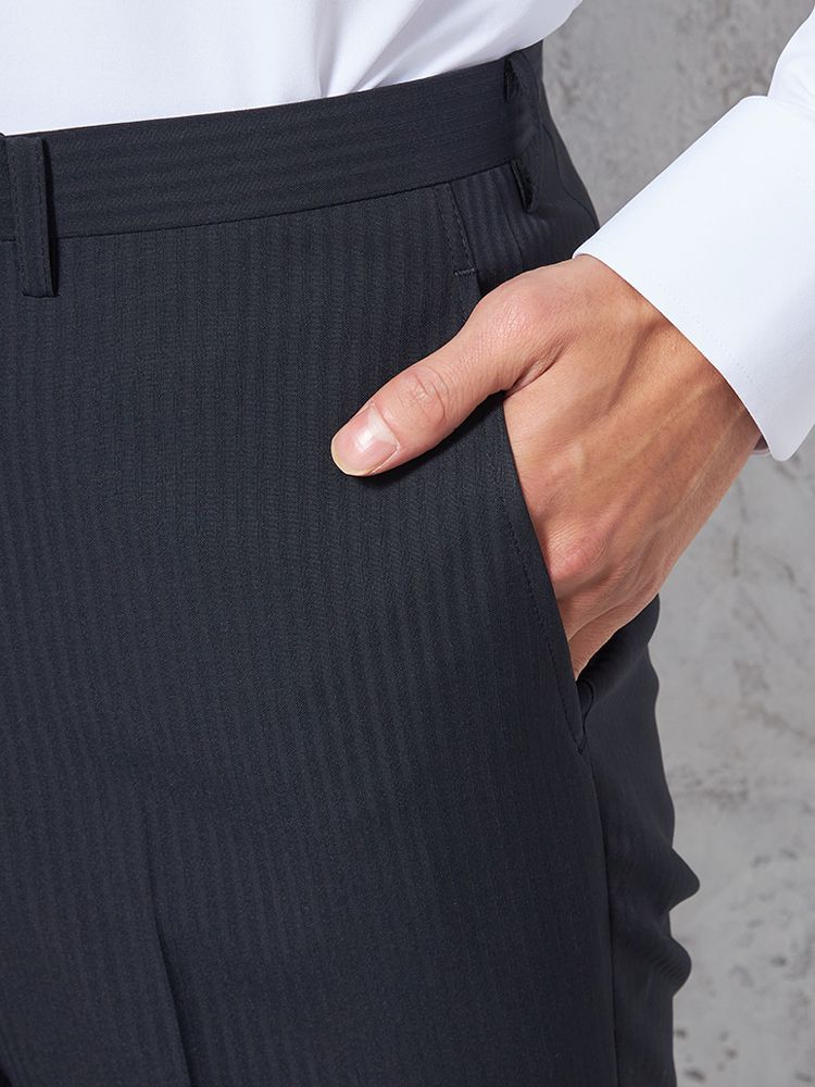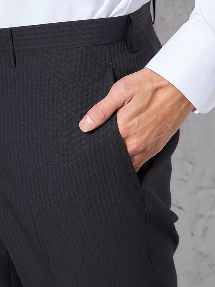 【4wayストレッチ】パンツ ノータック ドライパンツ 膝あて清涼裏地 シャドウストライプ nero 春夏(ブラック)