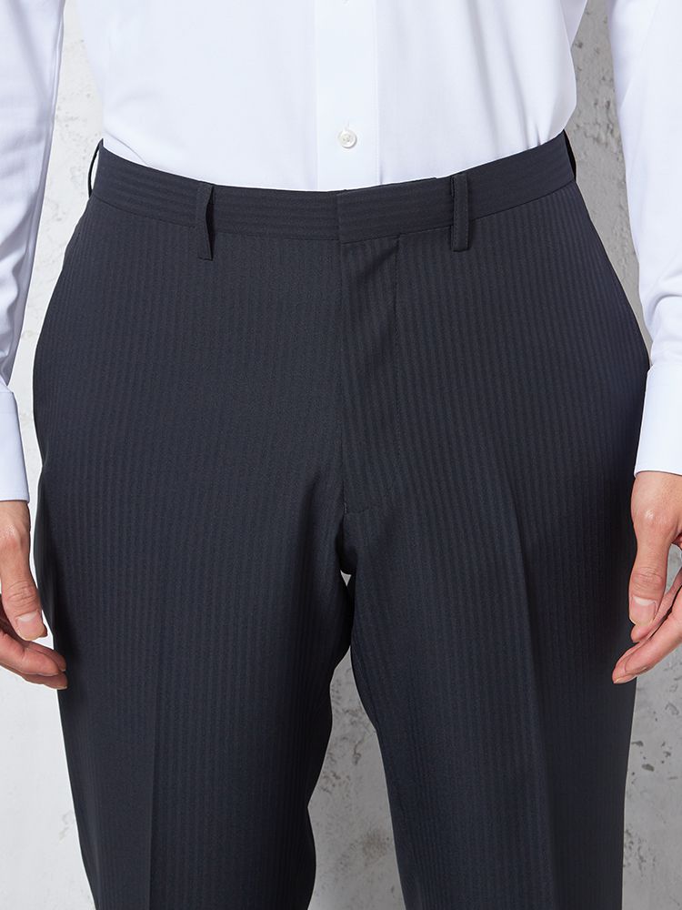 • ブラック 【4wayストレッチ】パンツ ノータック ドライパンツ 膝あて清涼裏地 シャドウストライプ nero 春夏 1207761334