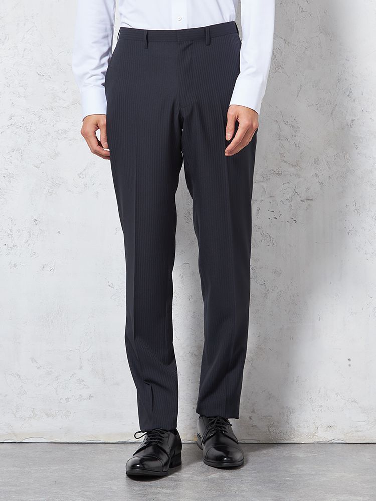柄の出方がさりげなく、上品な印象のシャドーストライプのパンツ。