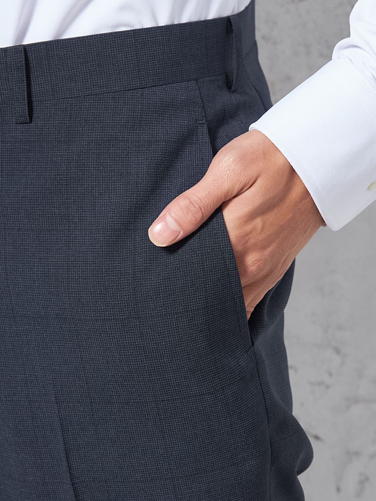 プリーツ加工を施しており、パンツの折り目が取れにくく、エレガントで落ち着いた印象を与えます。きっちりとした印象を保ちながら、スタイリングがしやすく便利です。