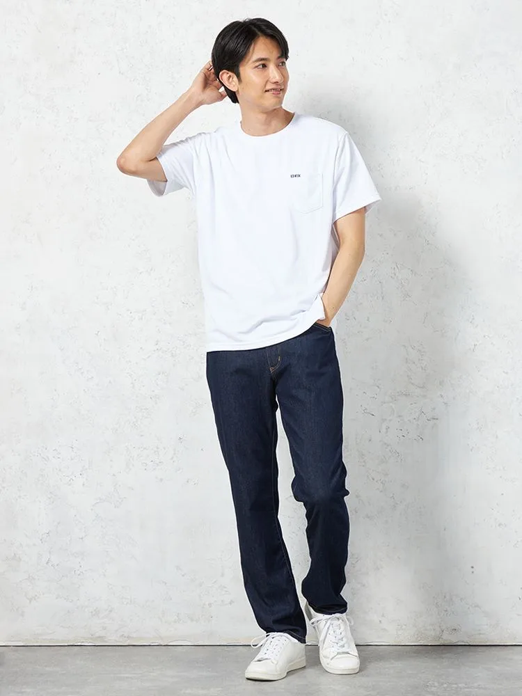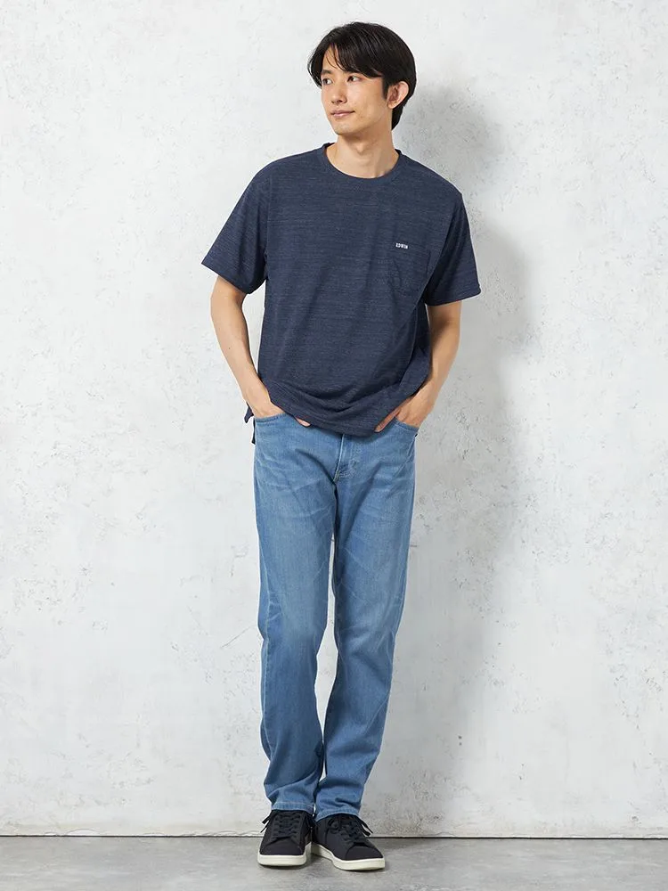 年齢問わず着用可能なレギュラーフィット。脇スリットや胸ポケットに“EDWIN”刺繍を施しています。