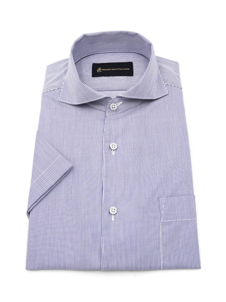 • 【形態安定】半袖ワイシャツ ワンピースカラー カッタウェイ 織柄無地 ビバリーヒルズポロクラブ 春夏 1549704316
