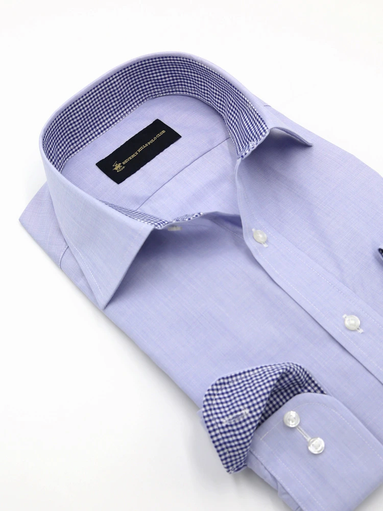 【形態安定】長袖ワイシャツ セミワイド 別布 ブルー 織柄無地 ビバリーヒルズポロクラブ 通年