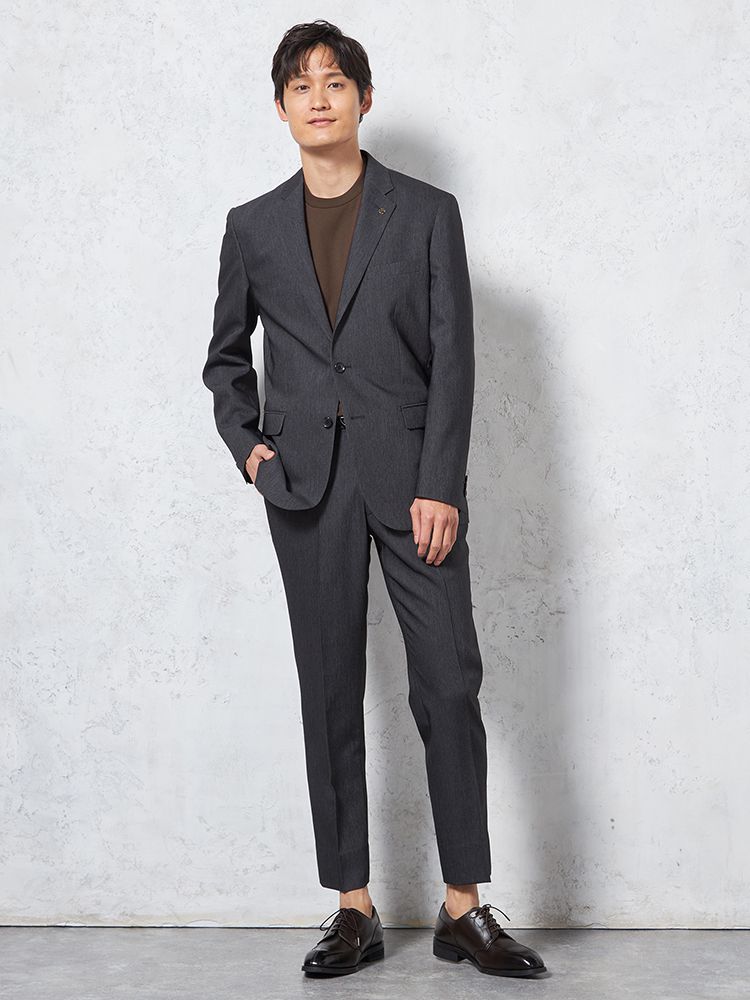 切り込みが1本のセンターベントデザインです。細身でスッキリとしたシルエットが特徴で、快適な着心地を提供します