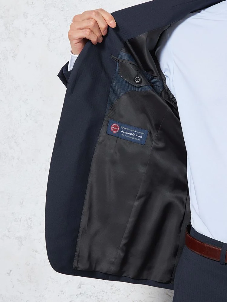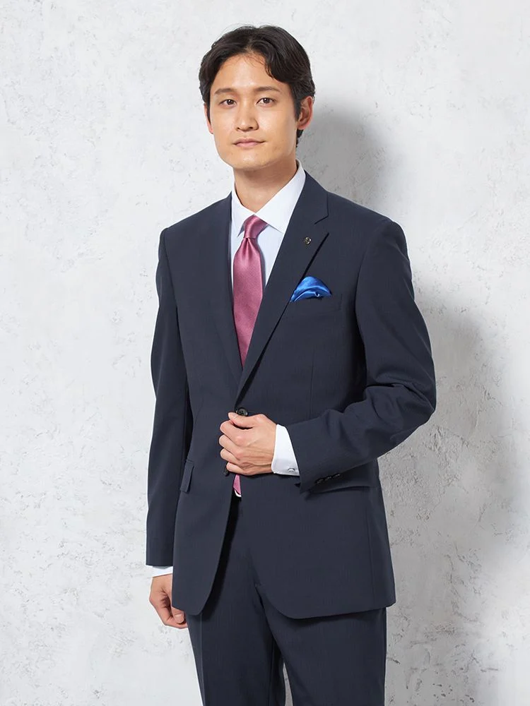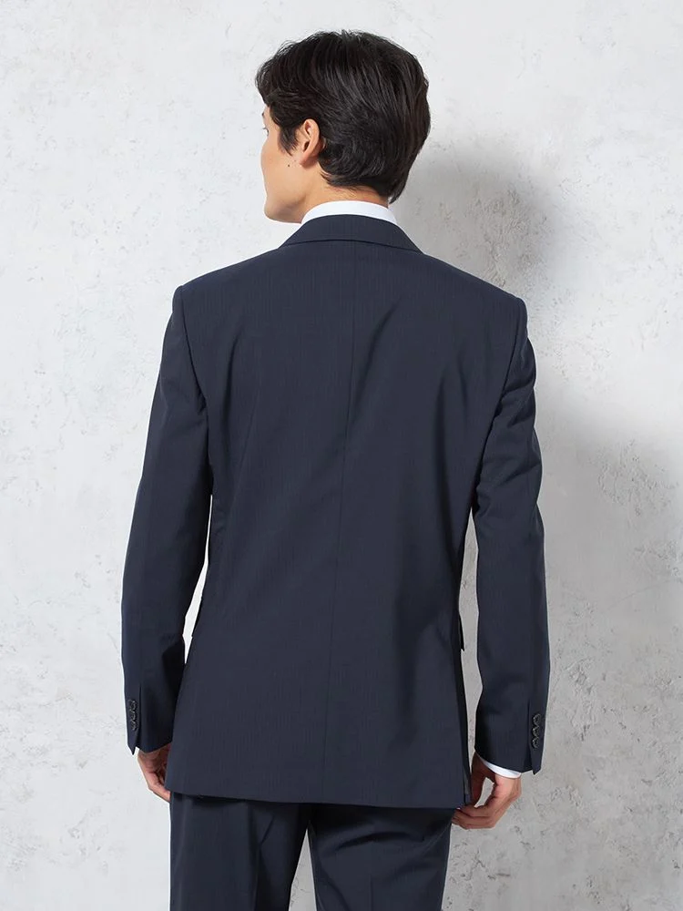 【上下ウォッシャブル】スリーピーススーツ2つボタン脚長スリムネイビーシャドウストライプNERO通年