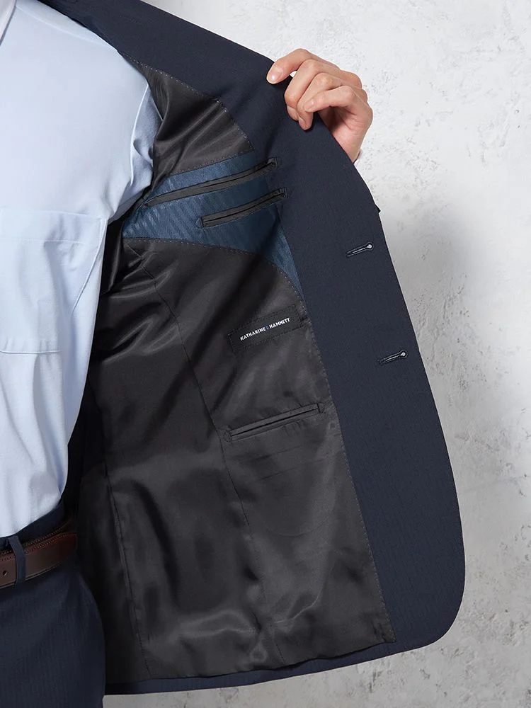 環境配慮をコンセプトに持つ【KATHARINE E HAMNETT-キャサリン・イー・ハムネット-】の2つボタンスーツ。