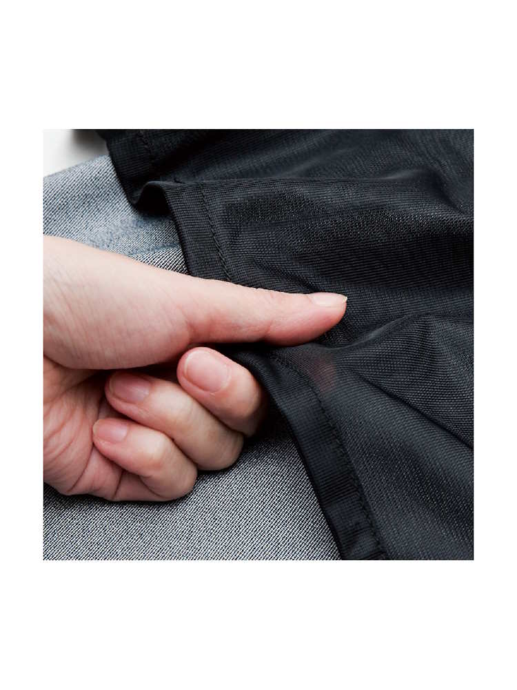 ウエストゴム部分が表裏ともに滑る生地なので巻きこまず、一人で履きやすい。