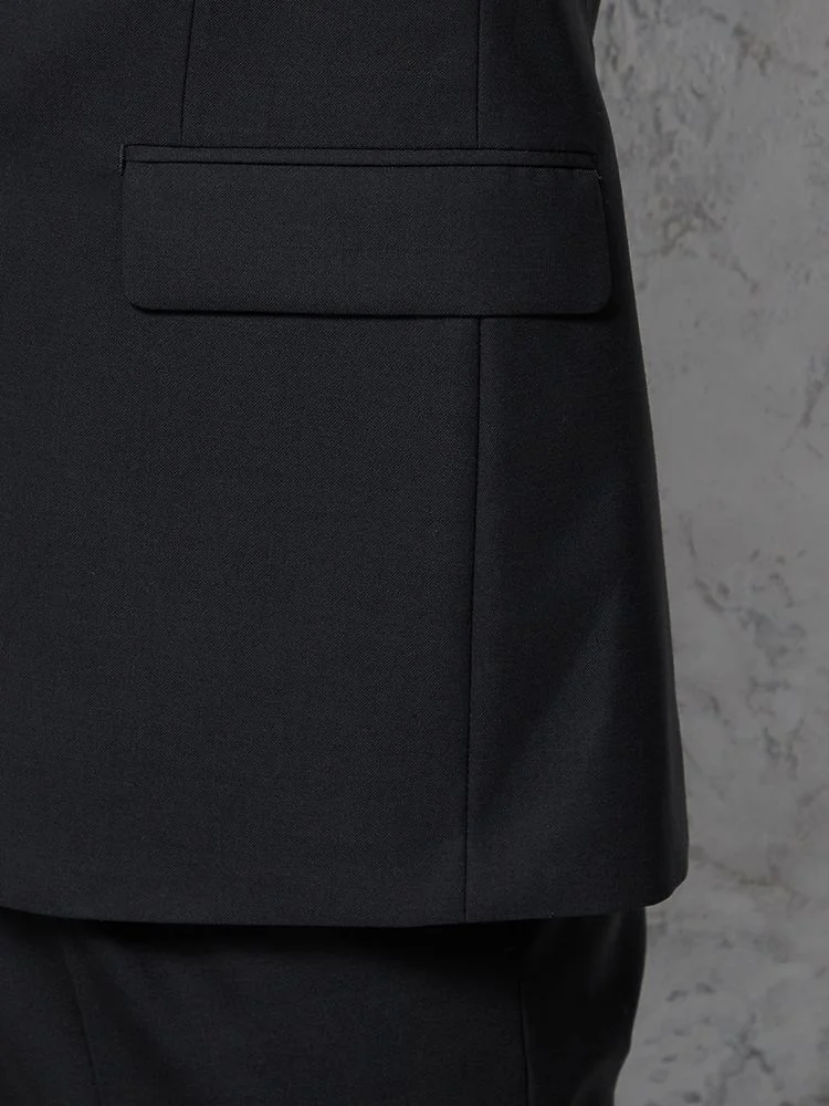 切り込みが1本のセンターベントデザインです。細身でスッキリとしたシルエットが特徴で、快適な着心地を提供します