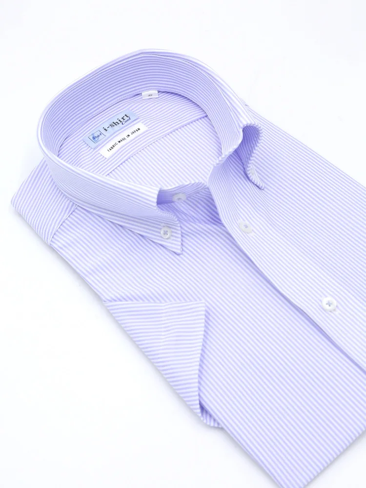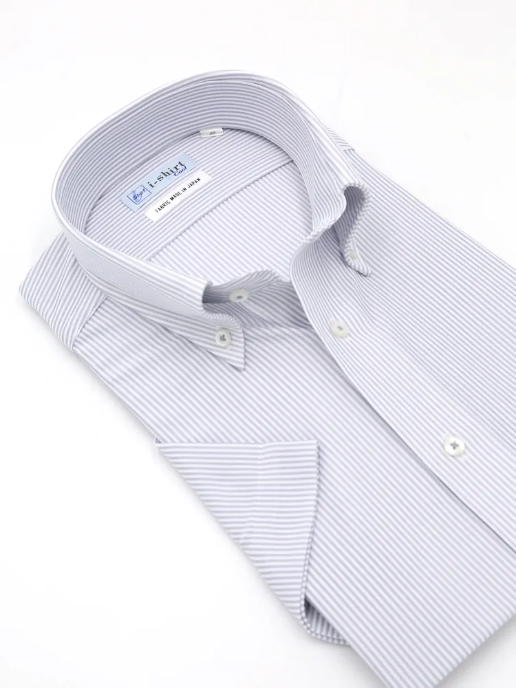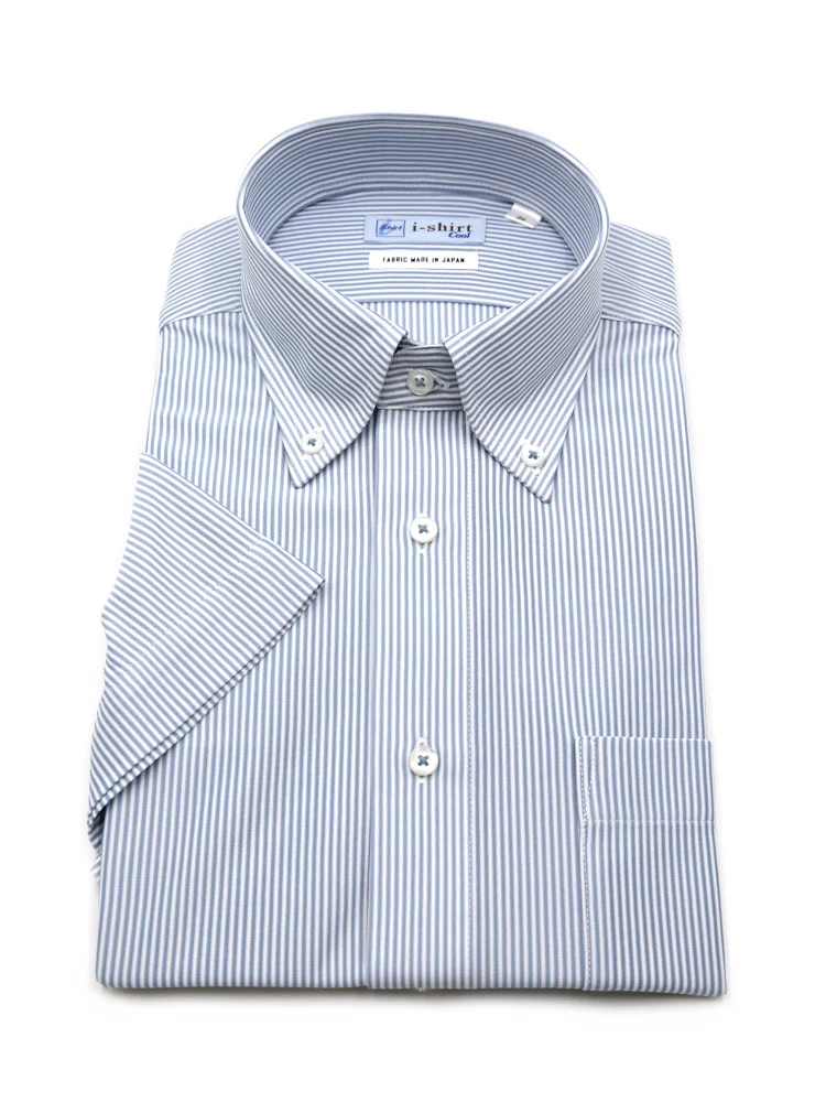 【完全ノーアイロン】半袖アイシャツボタンダウン【アイスライブ生地使用】吸湿冷感シャドーストライプi-shirtワイシャツ春夏