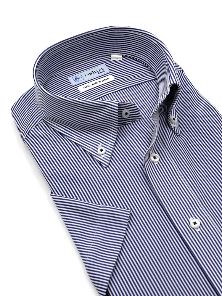 【完全ノーアイロン】半袖アイシャツボタンダウン【バイオセンサークール生地使用】吸湿冷感高通気ストライプワイシャツi-shirt春夏