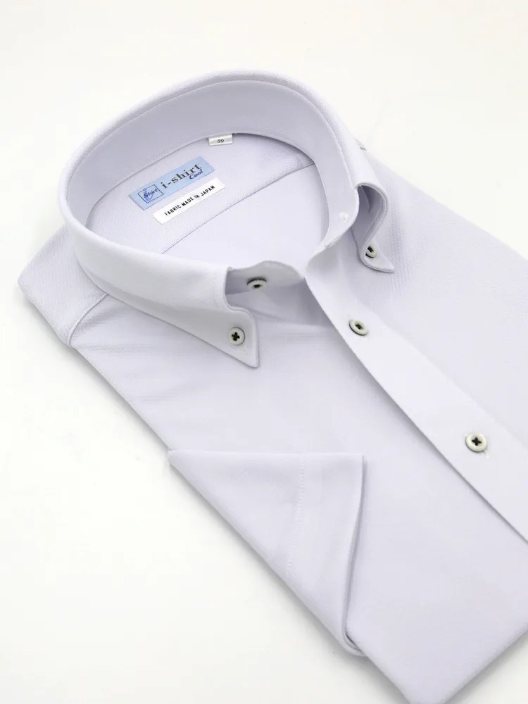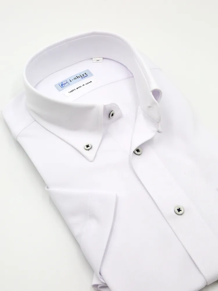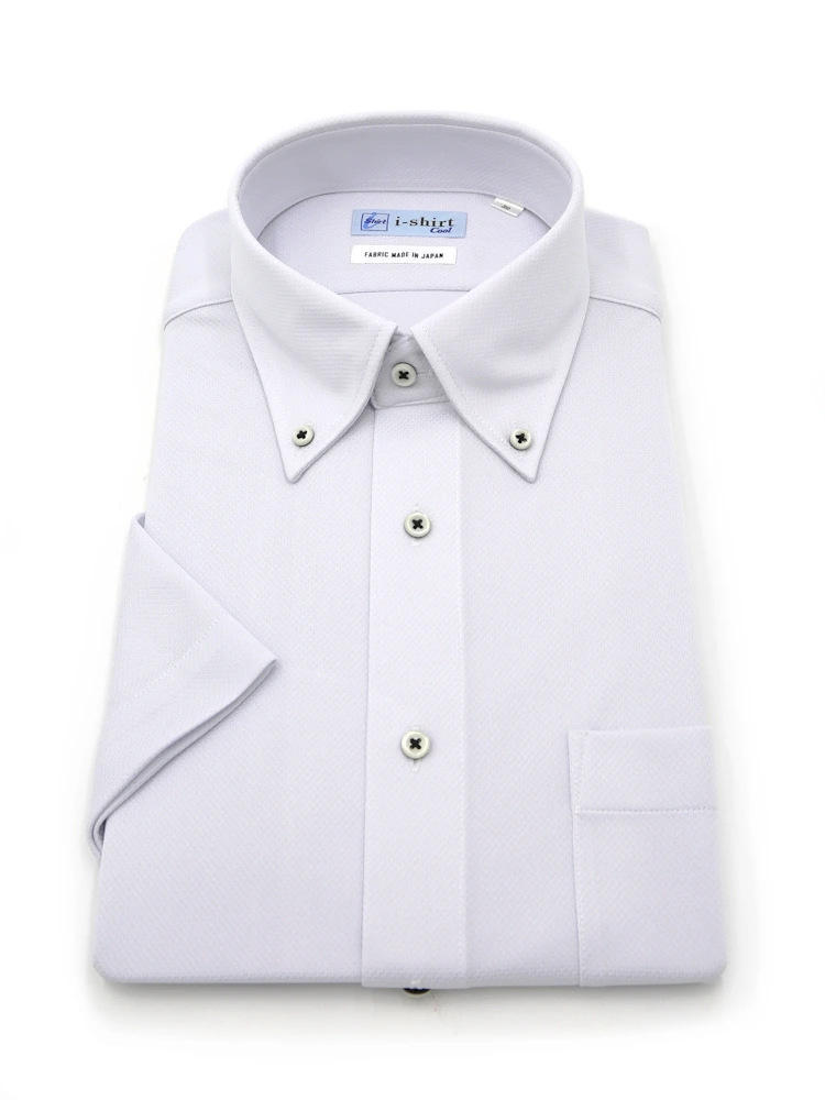 【完全ノーアイロン】半袖アイシャツクレリックボタンダウン【アイスライブ生地使用】吸湿冷感シャークスキンi-shirtワイシャツ春夏