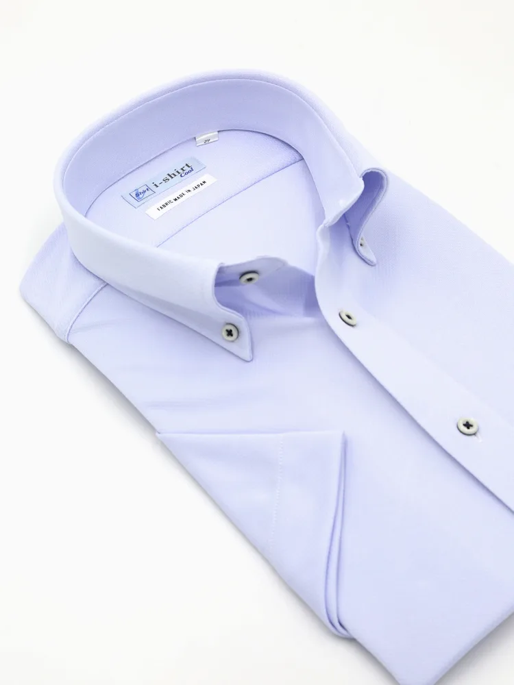 【完全ノーアイロン】半袖 アイシャツ ボタンダウン【アイスライブ生地使用】吸湿冷感 シャークスキン i-shirt ワイシャツ 春夏(サックス)