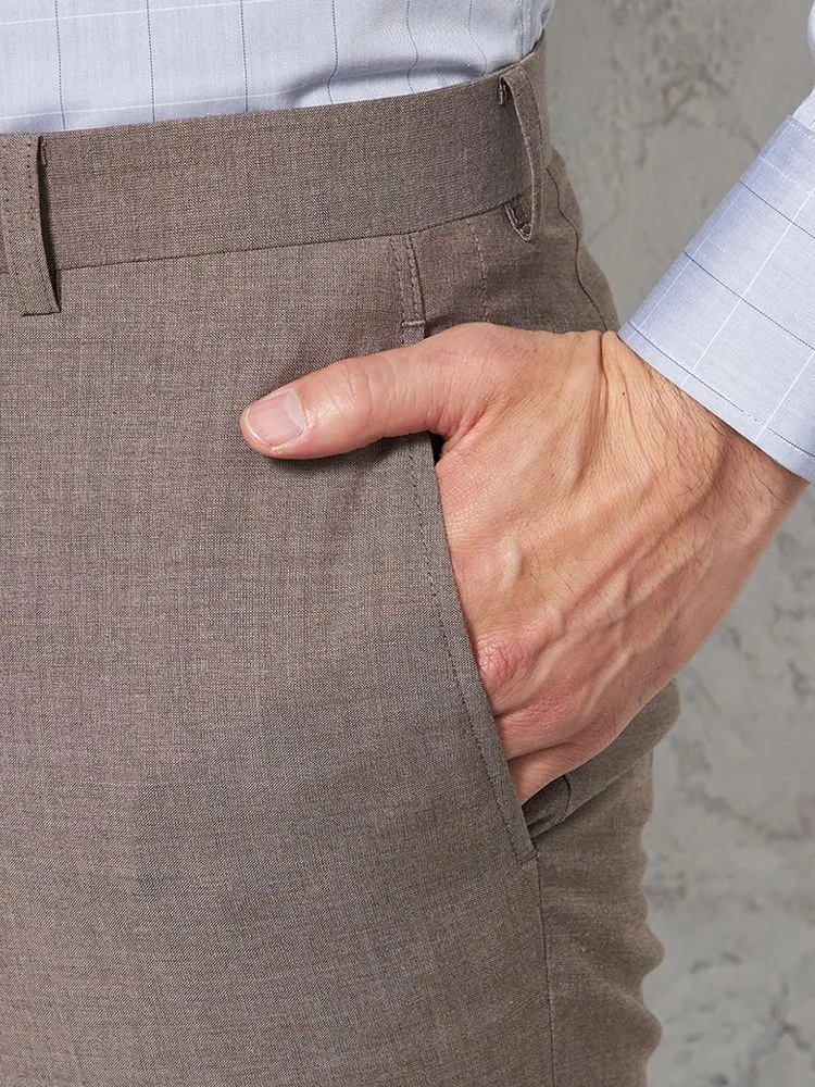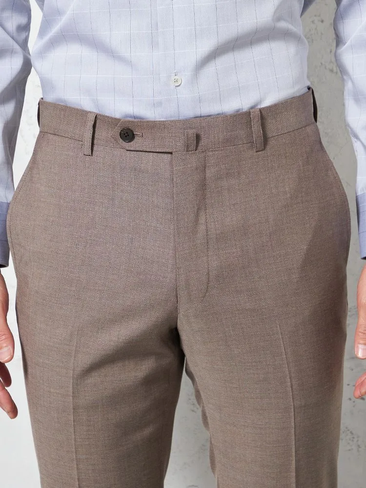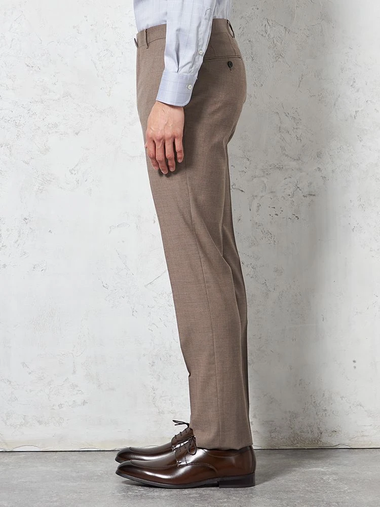 【サスティナブル素材】パンツ ノータック スリムシルエット【REDA社製生地】ブラウン 無地 STOVEL&MASON