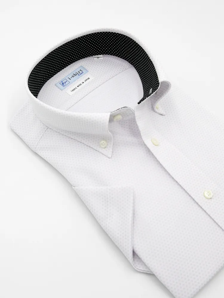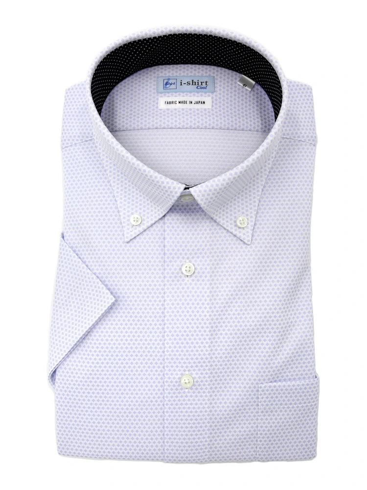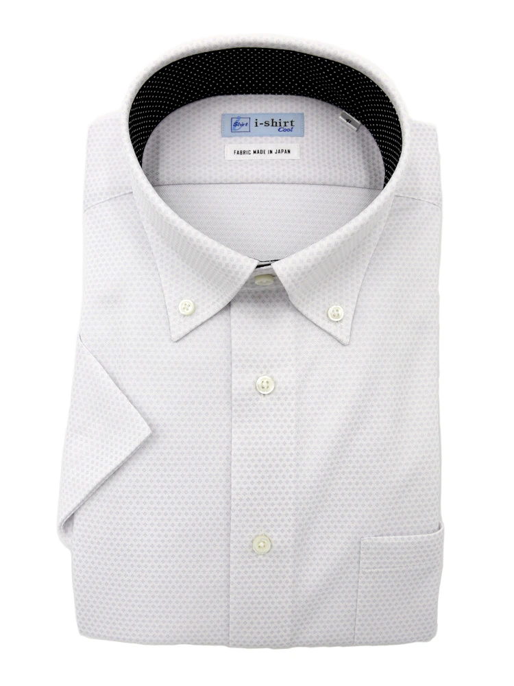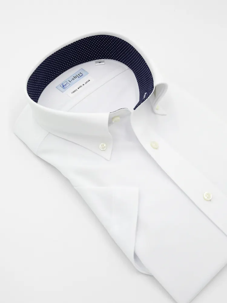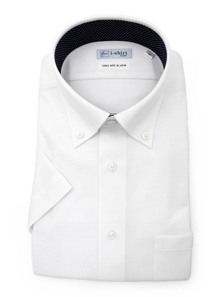【完全ノーアイロン】半袖アイシャツボタンダウン【アイスライブ生地使用】吸湿冷感シャークスキンi-shirtワイシャツ春夏