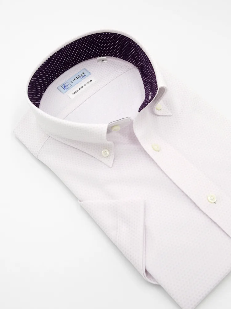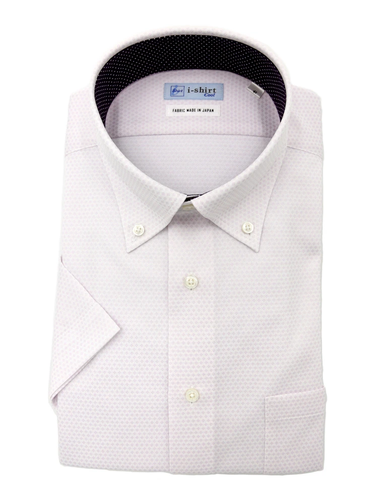 【完全ノーアイロン】半袖 アイシャツ ボタンダウン【メタクール生地使用】吸湿冷感 ドット ワイシャツ i-shirt 春夏(L.ピンク)
