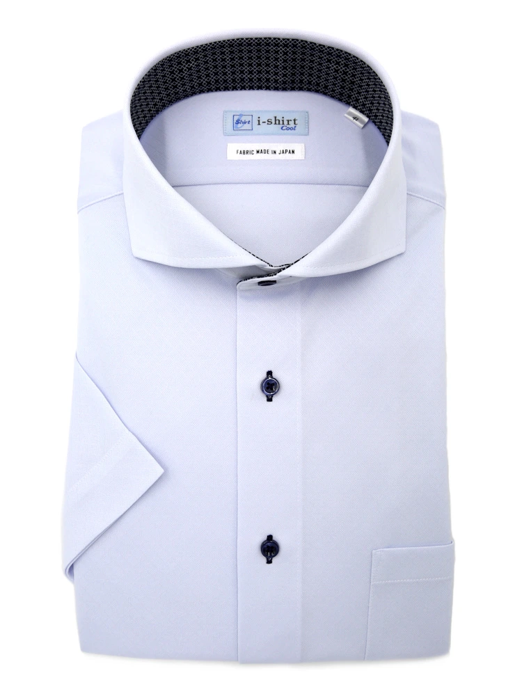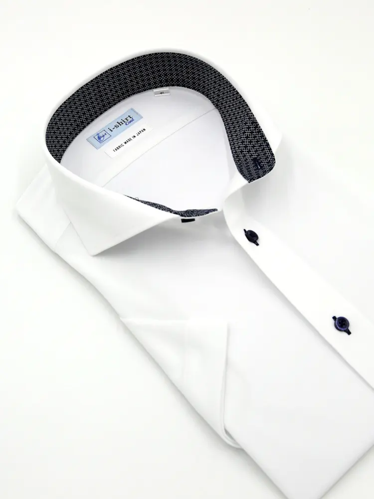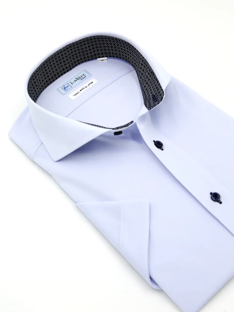 冷感を得られる快適素材、旭化成アドバンスの特殊加工 メタクール(R) 生地を使用した半袖アイシャツ。