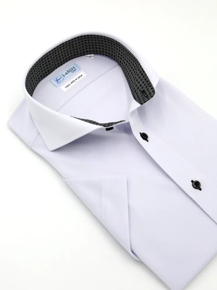 • ホワイト 【完全ノーアイロン】半袖 アイシャツ カッタウェイ【メタクール】吸湿冷感 シャドーチェック ワイシャツ i-shirt 春夏 1375817434
