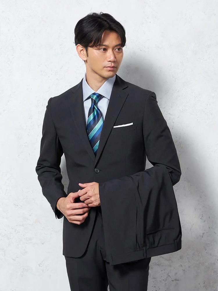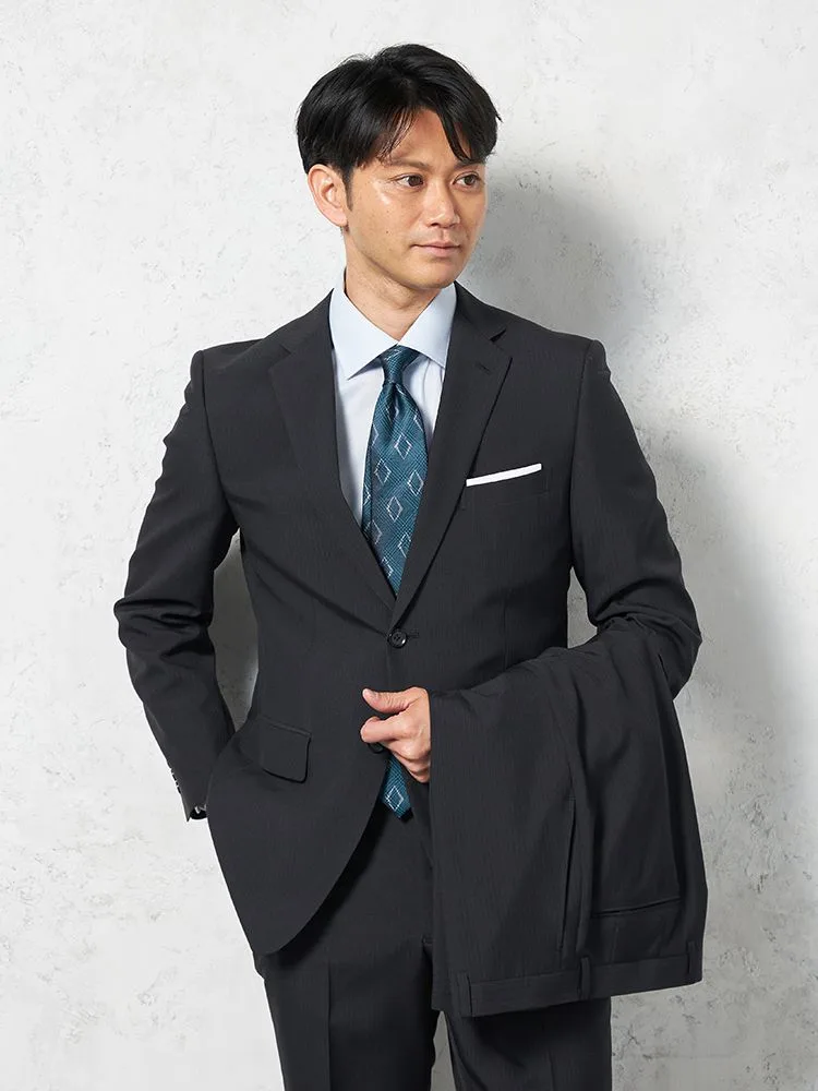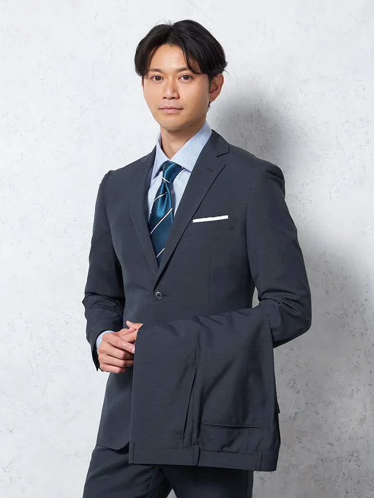 丈夫でしわになりにくく、上下ウォッシャブル仕様ですので、ご自宅で手入れをしやすくデイリーなスーツスタイルに活躍します。