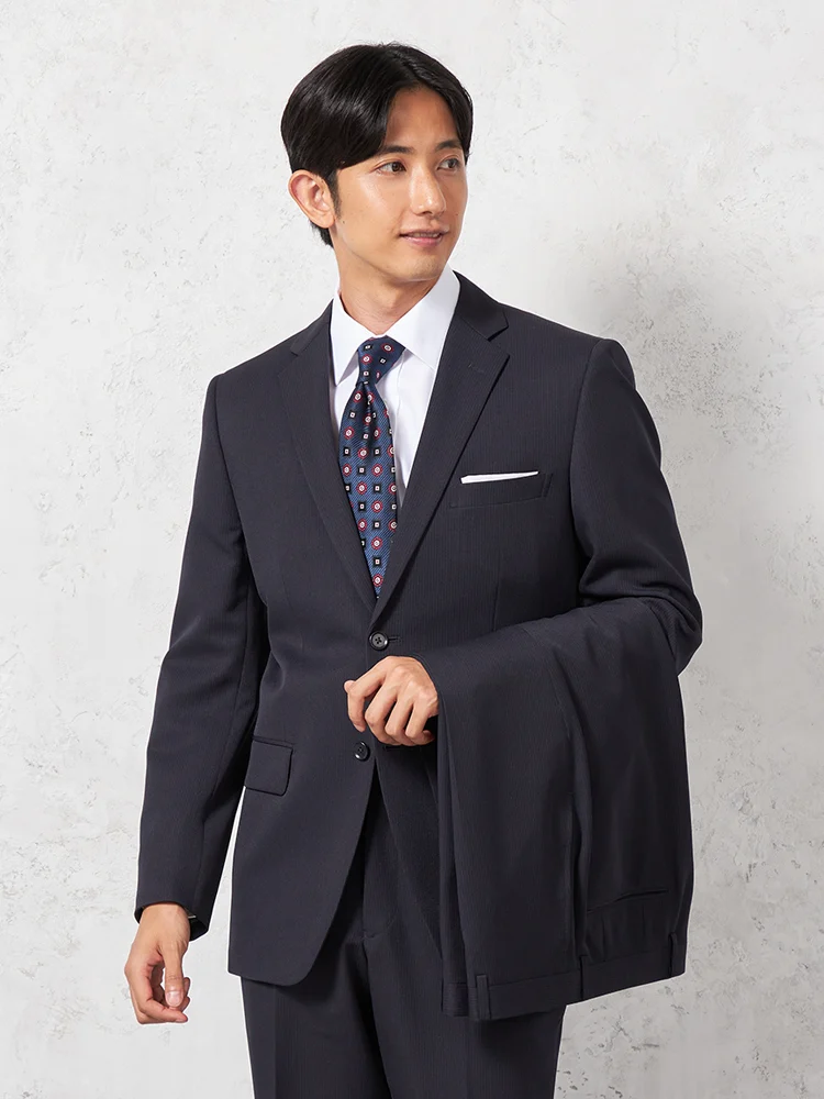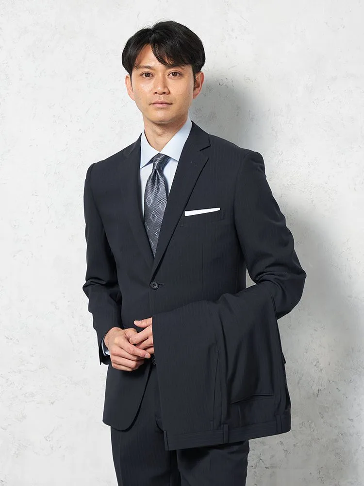【上下ウォッシャブル】スリーピーススーツ2つボタン脚長スリムネイビーシャドウストライプNERO通年