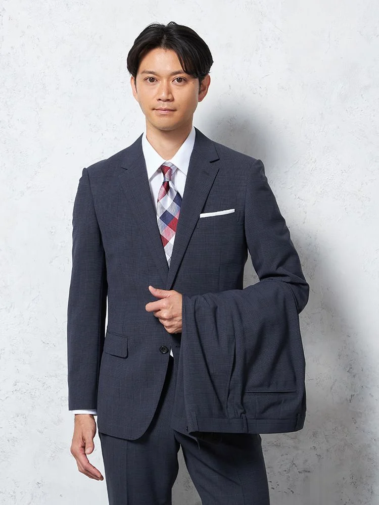 【上下ウォッシャブル】スーツ2つボタンツーパンツイージーケアネイビーマイクロチェックフュージョンクラブ