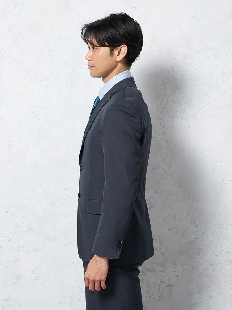 切り込みが1本のセンターベントデザインです。細身でスッキリとしたシルエットが特徴で、快適な着心地を提供します