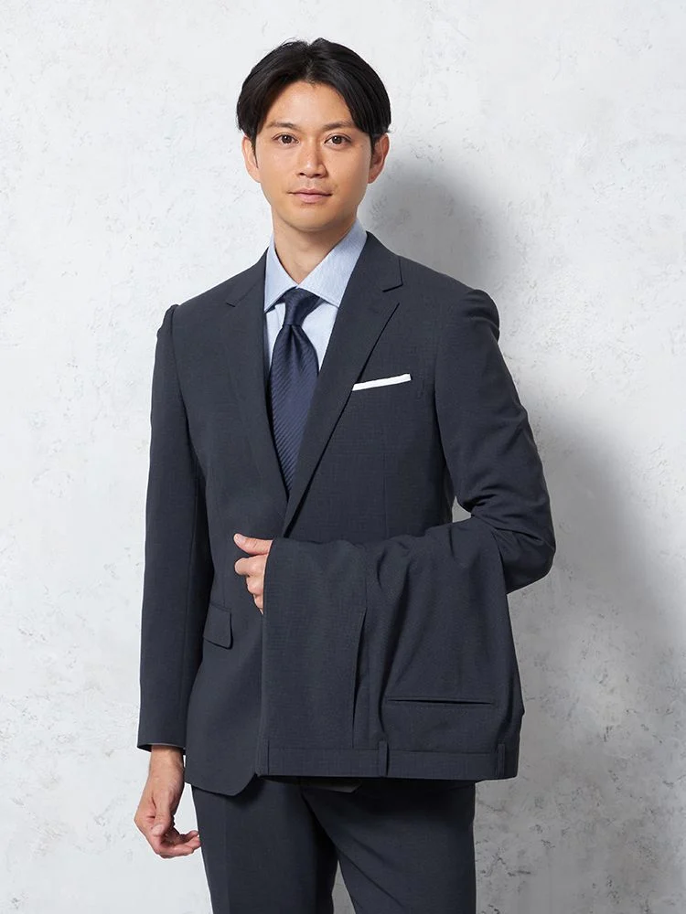 ジャケットは背抜き裏地とセンターベント仕様で、動きやすく軽やかな着心地です。