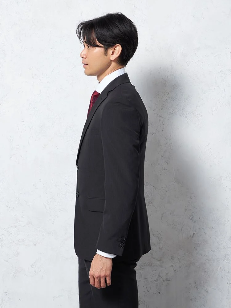 切り込みが1本のセンターベントデザインです。細身でスッキリとしたシルエットが特徴で、快適な着心地を提供します