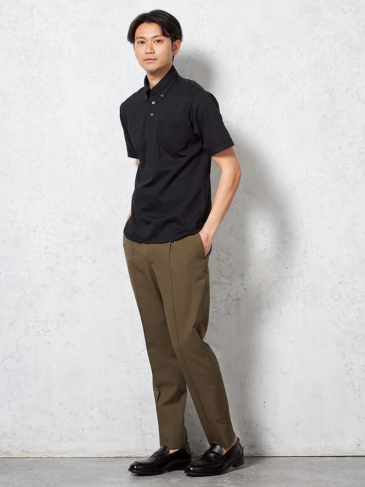 【汗じみ防止】半袖 ポロシャツ ボタンダウン ビズポロ シルケット加工 カジュアルインナー 無地 TOKYO RUN 春夏(ブラック)