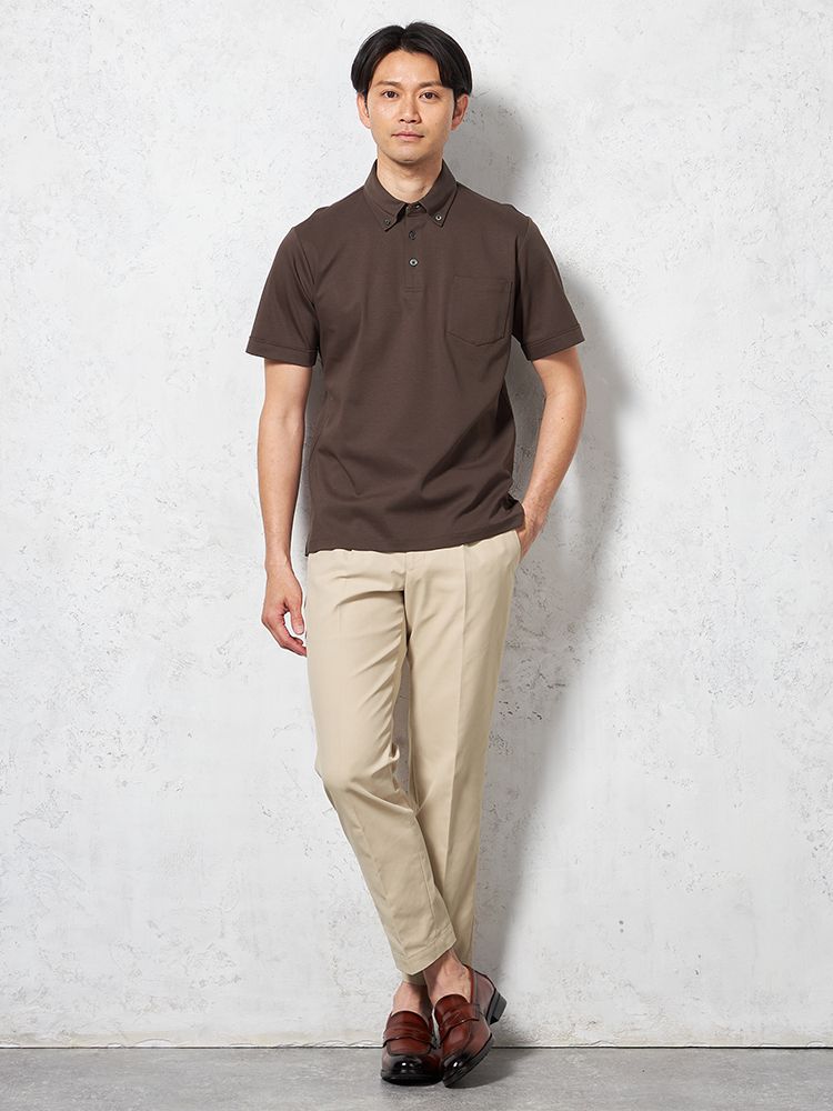 汗染み防止加工を施すことで、清潔感のある見た目をキープするポロシャツです。