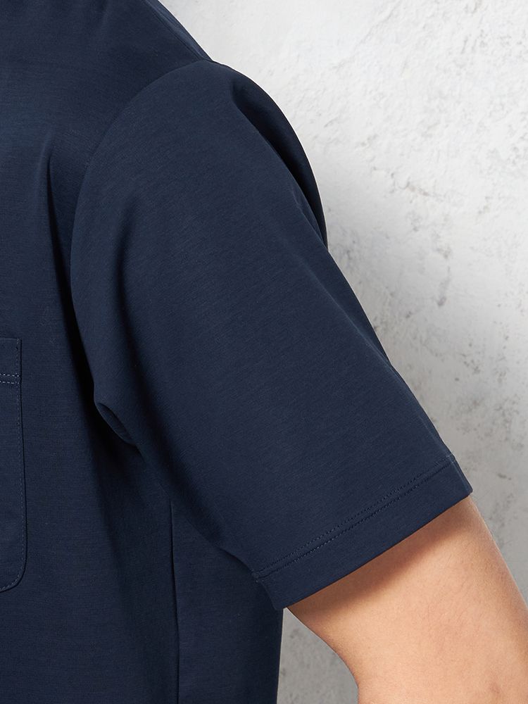 汗ジミ防止加工が施されており、汗をかいても気になりません。清潔感を保ちながら長時間着用できます。