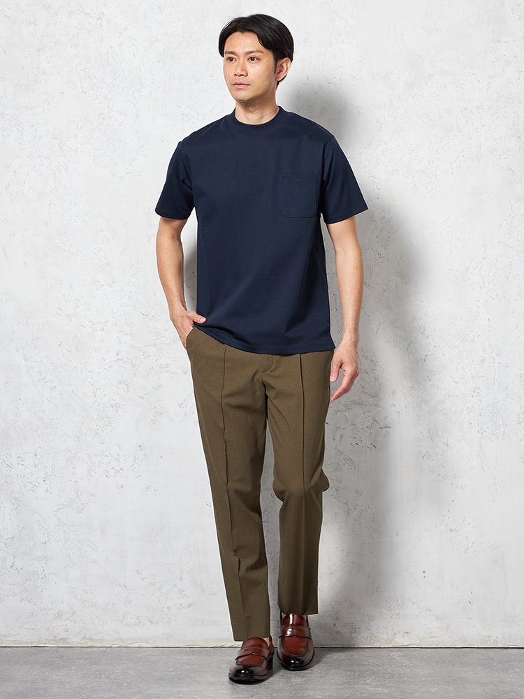 【汗じみ防止】半袖 クルーネックTシャツ ポケット付 ビズT シルケット加工 カジュアルインナー 無地 TOKYO RUN 春夏(オフホワイト)