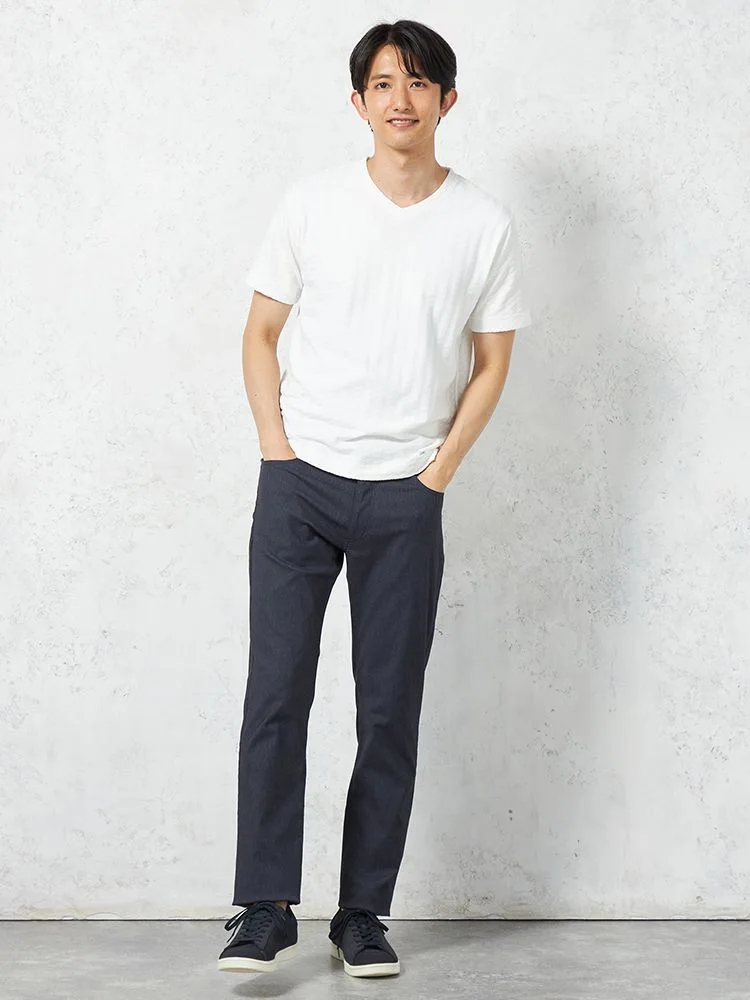白いスニーカーなどを合わせると、クリーンに着こなせます。