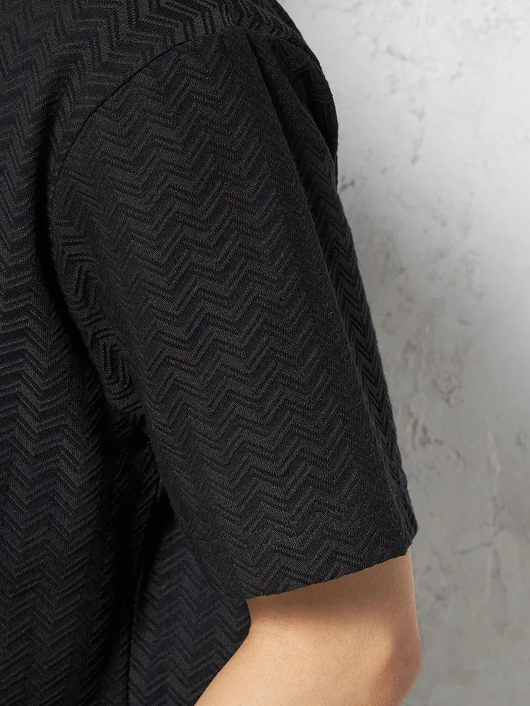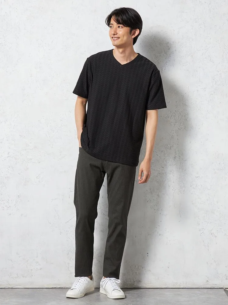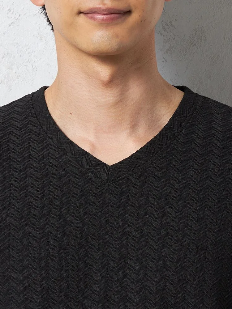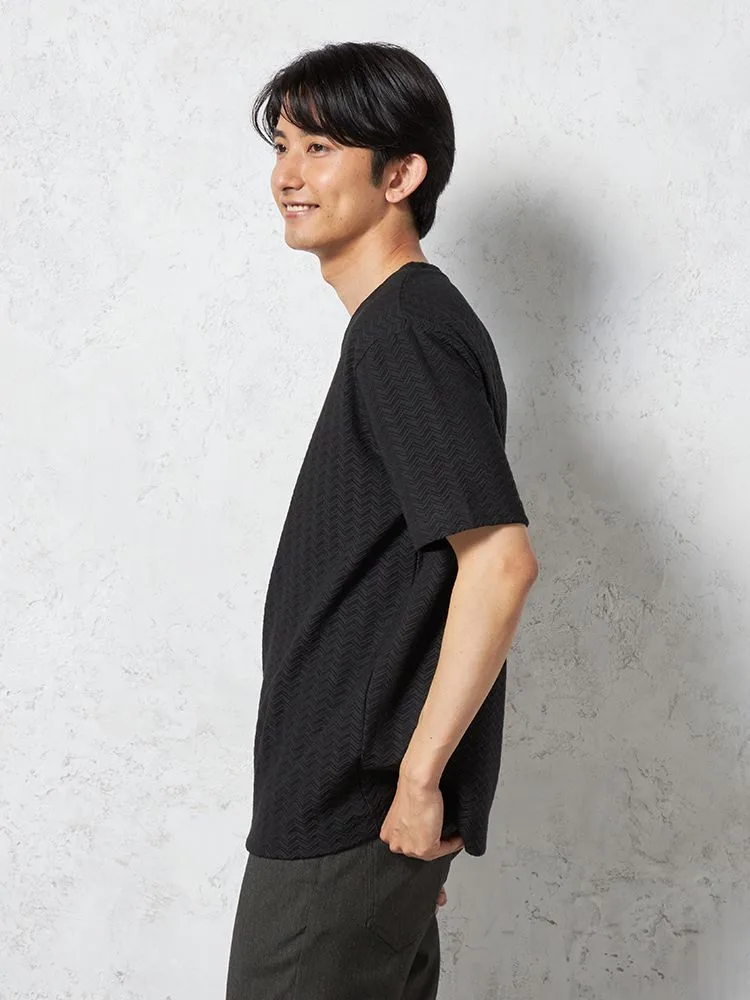 ニットの編み柄で立体感のあるヘリンボーンを表現したTシャツです。