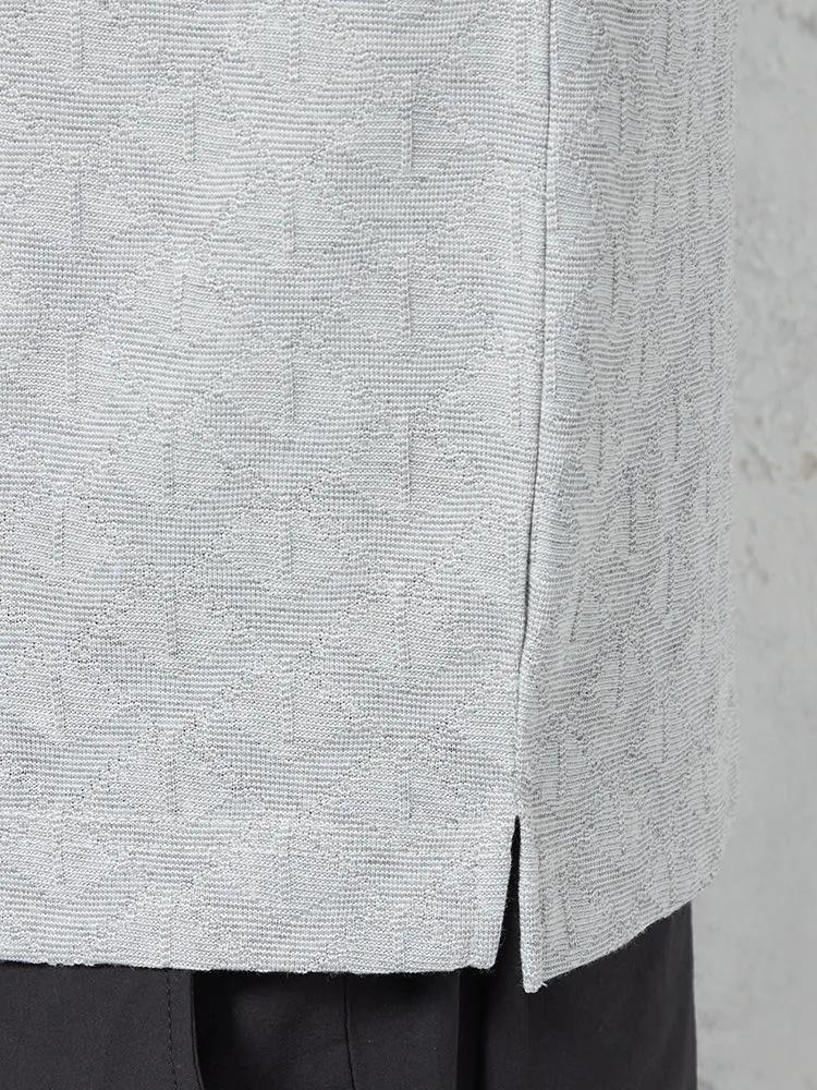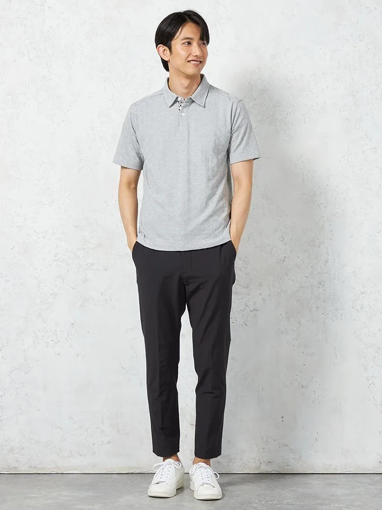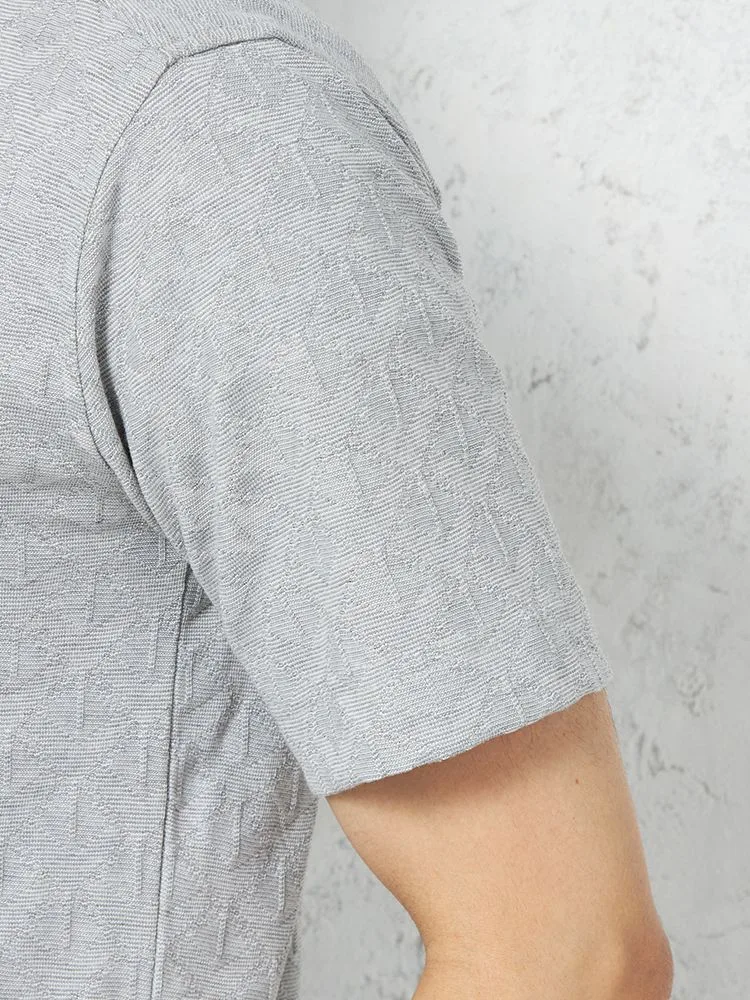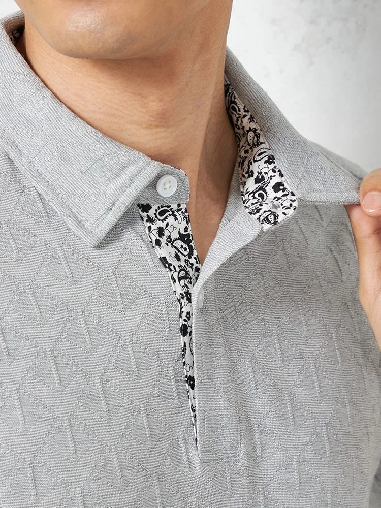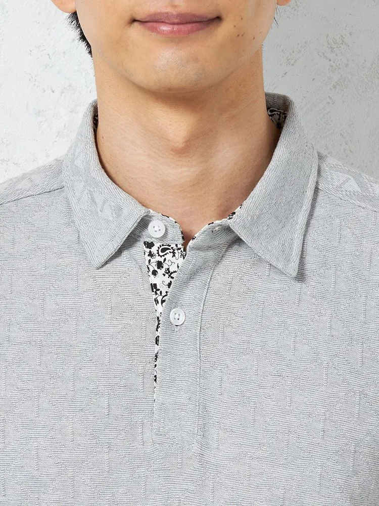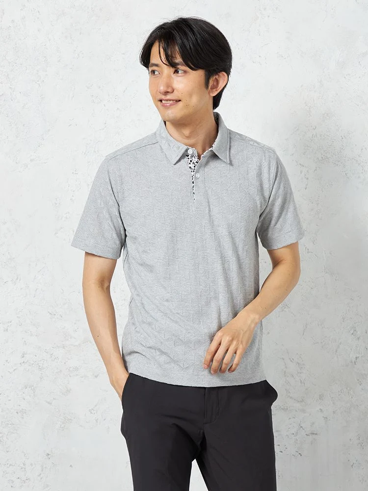【RUCKEN BACCHAR】半袖 ポロシャツ 衿裏配色 幾何学ジャガード カジュアルインナー 春夏(L.グレー)