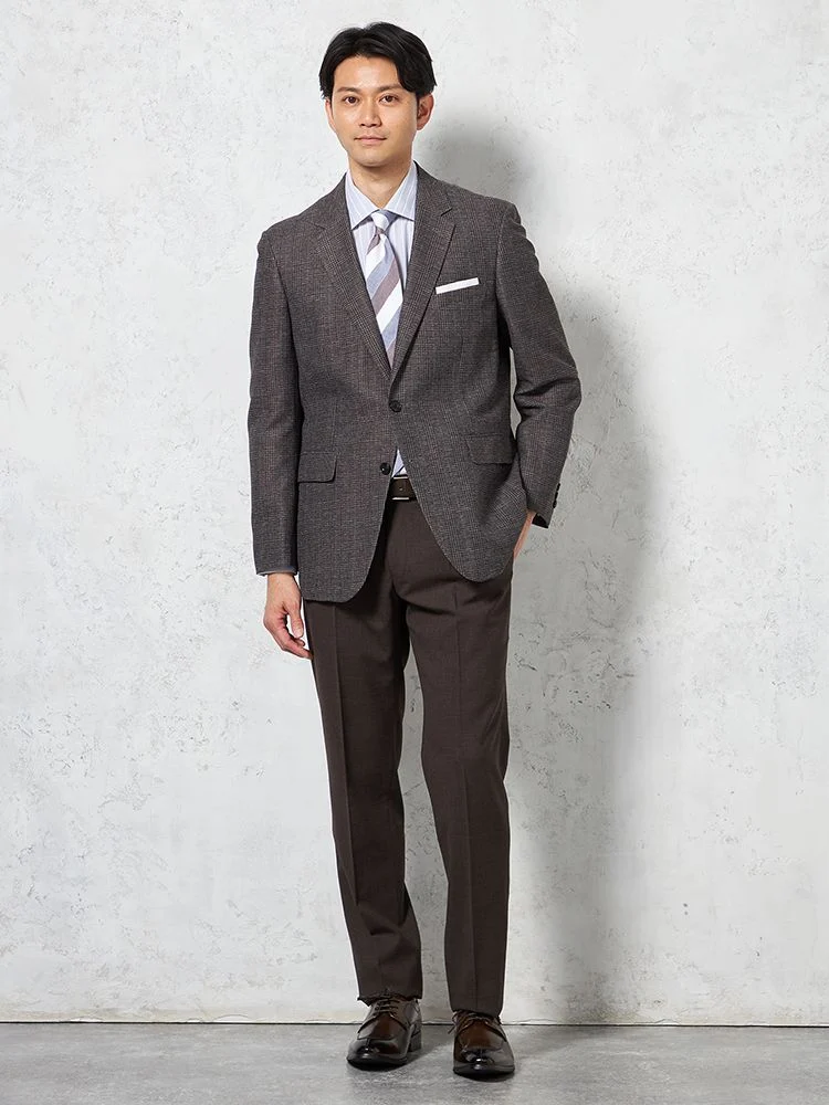 2つボタンのデザインで、クラシックなスタイルを演出。落ち着きと品のあるアイテムです。